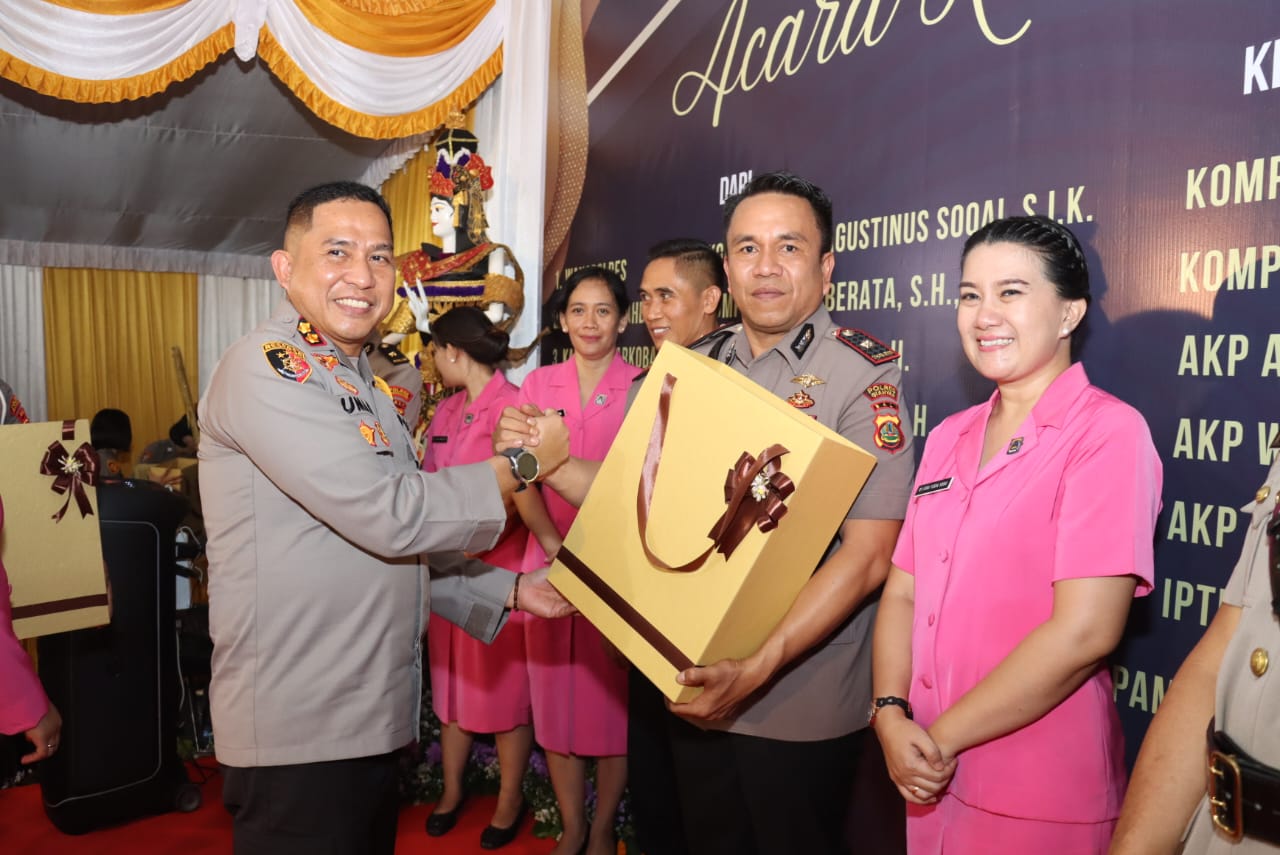 “Banyak kesan yang saya rasakan selama bertugas di sini. Suasana kekeluargaan yang hangat baik dengan atasan maupun bawahan, semuanya sudah saya anggap seperti keluarga. Saya juga mengucapkan terima kasih kepada Bapak Kapolres atas bimbingannya serta kepada Ibu Ketua Bhayangkari yang telah menjalankan organisasi dengan sangat baik,” ujarnya.
