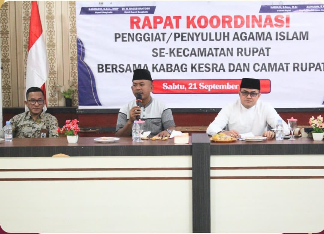 Bengkalis melalui Bagian Kesejahteraan Rakyat (kesra) Setda Kabupaten Bengkalis menggelar Rapat Koordinasi (Rakor) Bersama penggiat penyuluh agama se-Kecamatan Rupat di Aula Kantor Camat Rupat, Sabtu (21/9/2024).