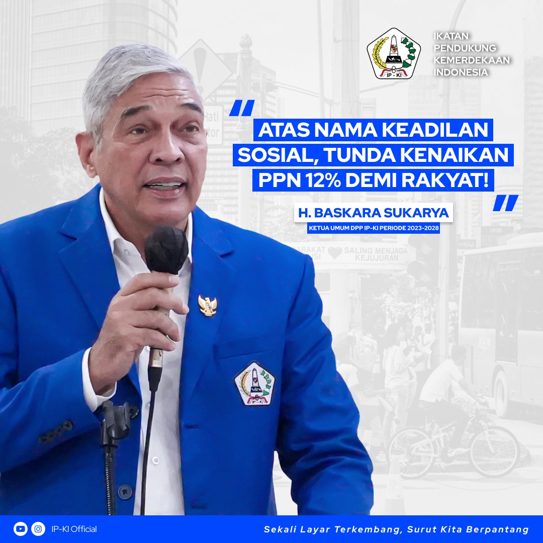 JAKARTA | POROSNUSANTARA.COM – “Keadilan sosial bagi seluruh rakyat Indonesia bukan-lah sekadar jargon, melainkan fondasi ideologi bangsa Indonesia yang harus diwujudkan dalam setiap kebijakan negara,” tegas Baskara Sukarya, Ketua Umum DPP IP-KI, dalam menanggapi rencana kenaikan tarif Pajak Pertambahan Nilai (PPN) menjadi 12 persen.