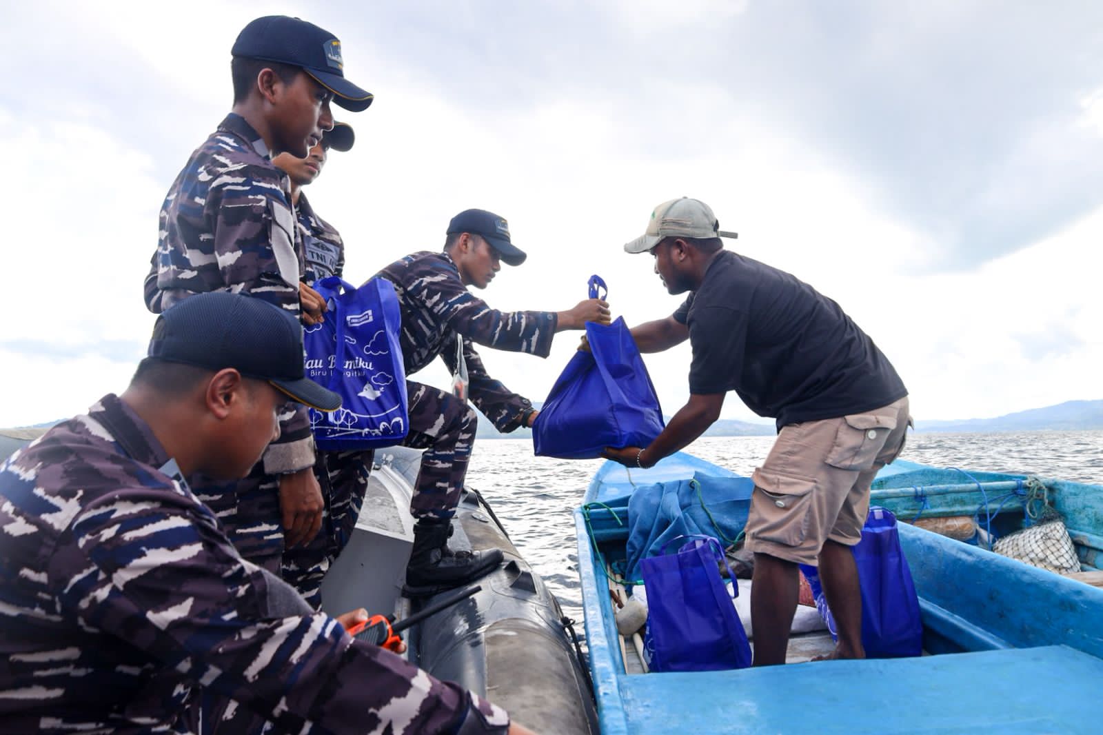 Para nelayan sangat berterima kasih kepada TNI Angkatan Laut dalam hal ini Kodaeral IX yang telah membagikan sembako bagi para nelayan.