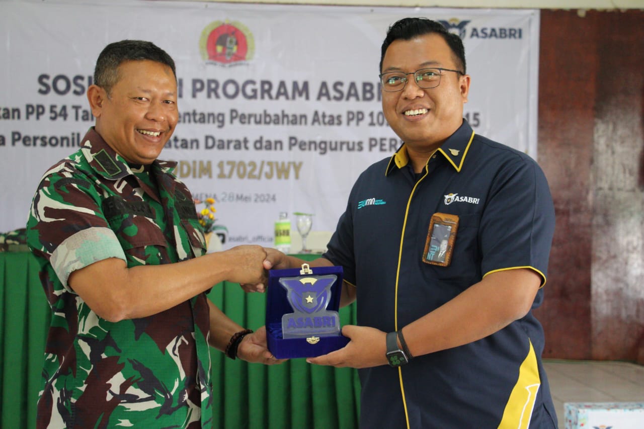 pin Kepala Staf Kodim 1702/Jayawijaya Mayor Inf Romadlon, tim dari PT. ASABRI melakukan sosialisasi program ASABRI di Kodim 1702/Jayawijaya, bertempat di Aula Makodim 1702/Jayawijaya Jln. Yos Sudarso, Distrik Wamena, Kabupaten Jayawijaya, Provinsi Papua Pegunungan, Selasa (28/05/20
