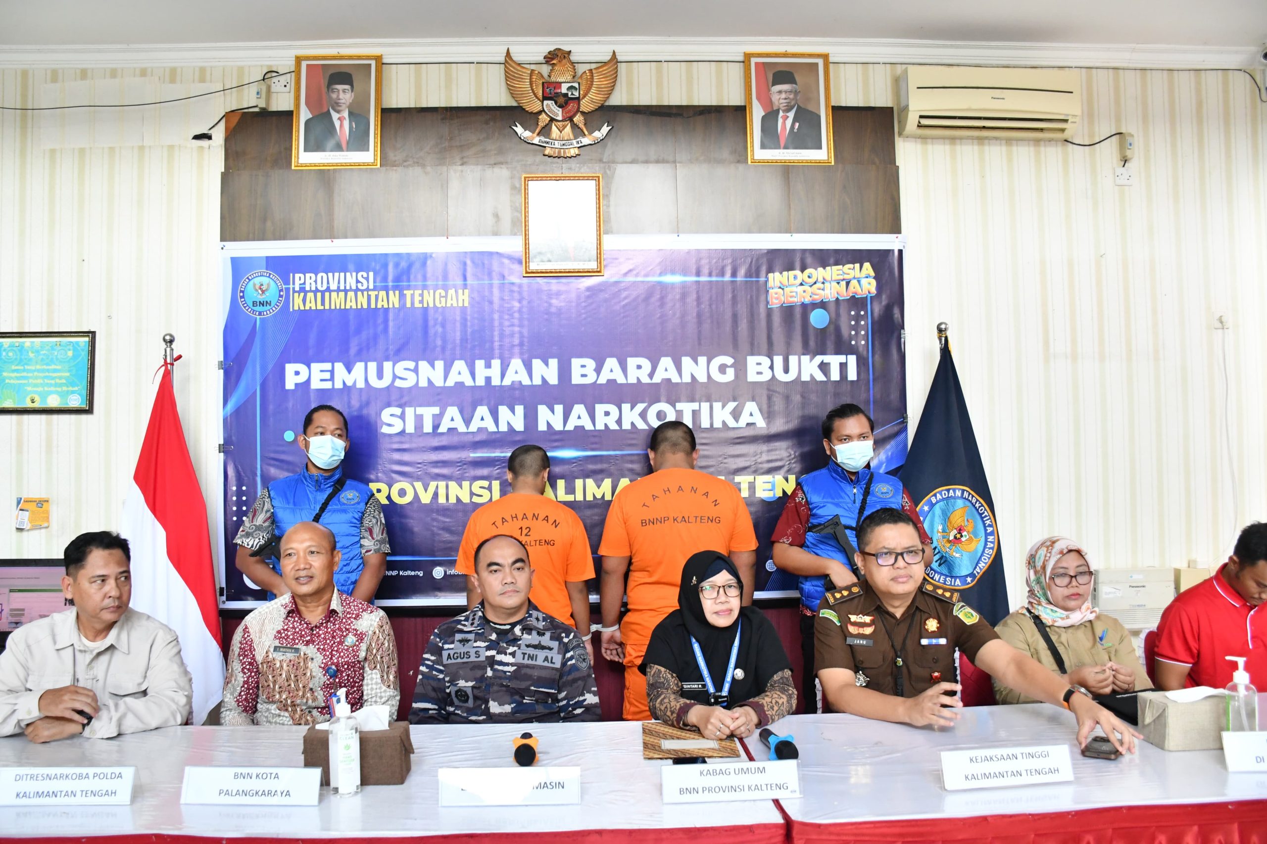BANJARMASIN | POROSNUSANTARA.COM – Komandan Pangkalan TNI AL Banjarmasin (Danlanal Banjarmasin) Kolonel Laut (P) Agus Setyawan, S.H., M.A.P., mengikuti kegiatan Pemusnahan Barang Bukti Sitaan Narkotika yang dilaksanakan di Kantor Badan Narkotikan Nasional (BNN) Provinsi Kalimantan Tengah, Jalan Tangkasiang, Palangka, Palangkaraya, Selasa (26/3/2024).