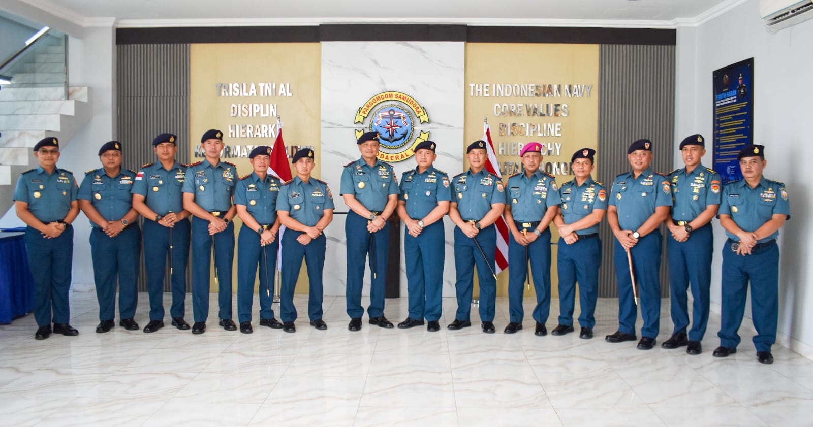 POROSNUSANTARA.COM | TNI AL, Sabang,- Komandan Lanal Sabang Kolonel Laut (P) Sadimin, S.E., M.Tr.Opsla., menghadiri Pengukuhan Kafasharkan Sabang Kolonel Laut (P) Cornelius Hasiolan Sinaga, S.E., M.M.,CRMP., yang dipimpin langsung Dankodaeral I Laksda TNI Deny Septiana, S.I.P., M.A.P., bertempat di Lobby Mako Kodaeral I, Jalan Serma Hanafiah No. 01 Belawan, Kota Medan, Rabu (20/8/2025).