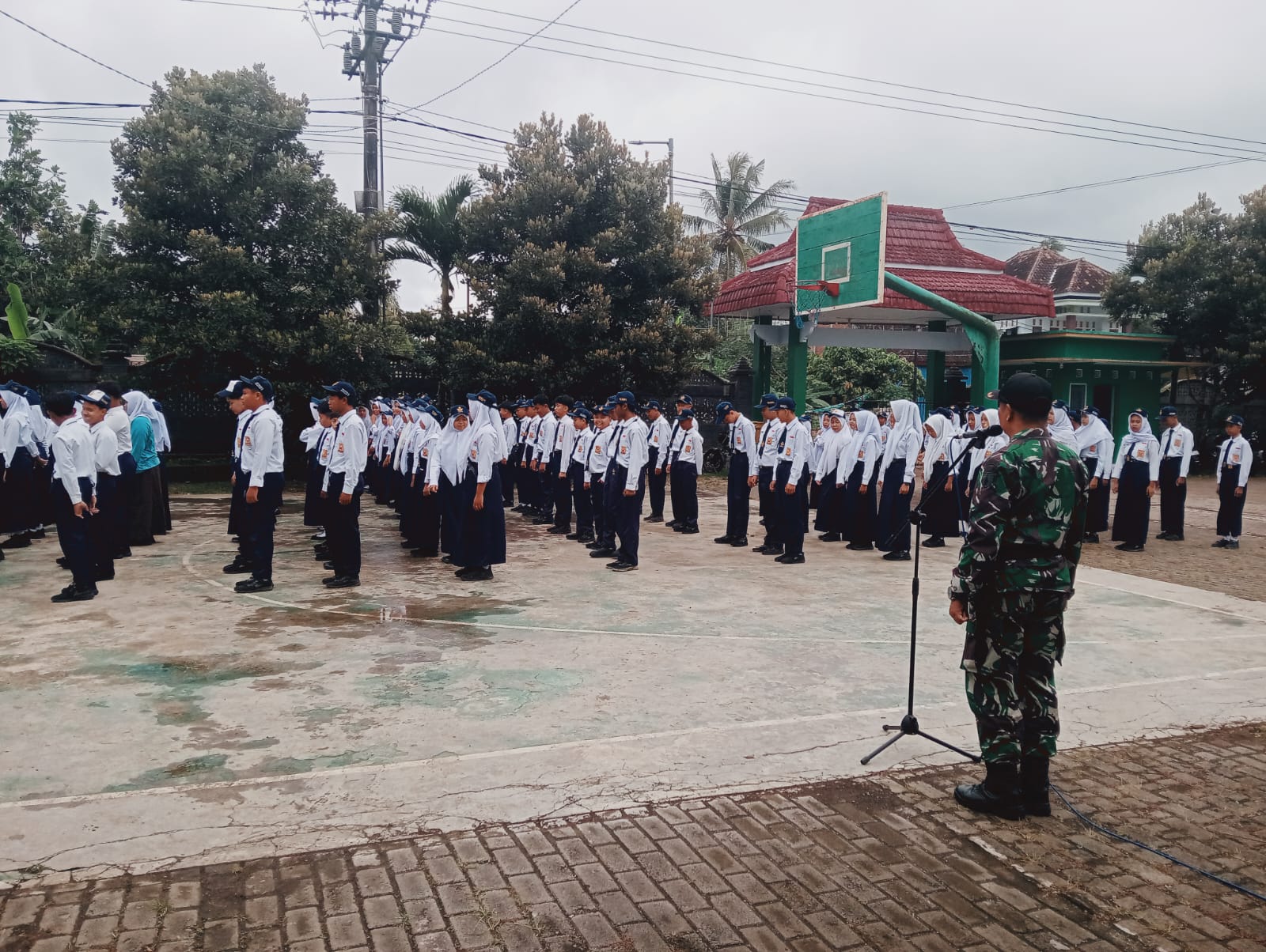 Kegiatan yang berlangsung di halaman sekolah tersebut dimulai pukul 08.00 WIB dan diikuti sekitar 150 siswa kelas VIII dan IX. Bertindak sebagai pemateri, Peltu Tomy Umbarsono, selaku Bati Tuud Koramil 12 Bantur, bersama seorang anggota, menyampaikan materi penting mengenai kedisiplinan, kebangsaan, serta pentingnya bela negara sejak dini.