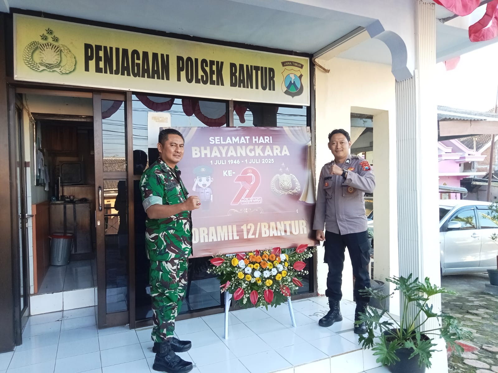 Bantur, 1 Juli 2025 |POROSNUSANTARA.COM — Dalam rangka memperingati Hari Ulang Tahun (HUT) ke-79 Kepolisian Republik Indonesia (Polri), jajaran Koramil 0818/12 Bantur menunjukkan sinergitas TNI-Polri dengan memberikan ucapan selamat secara langsung kepada jajaran Polsek Bantur.