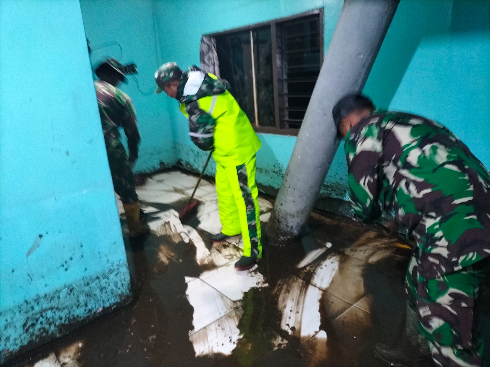 Melihat situasi tersebut, anggota Koramil 0818/33 Bumiaji bersama masyarakat setempat segera melakukan aksi tanggap darurat. Mereka bergotong royong membersihkan material lumpur, sampah, serta ranting pohon yang terbawa arus dan menutupi badan jalan.