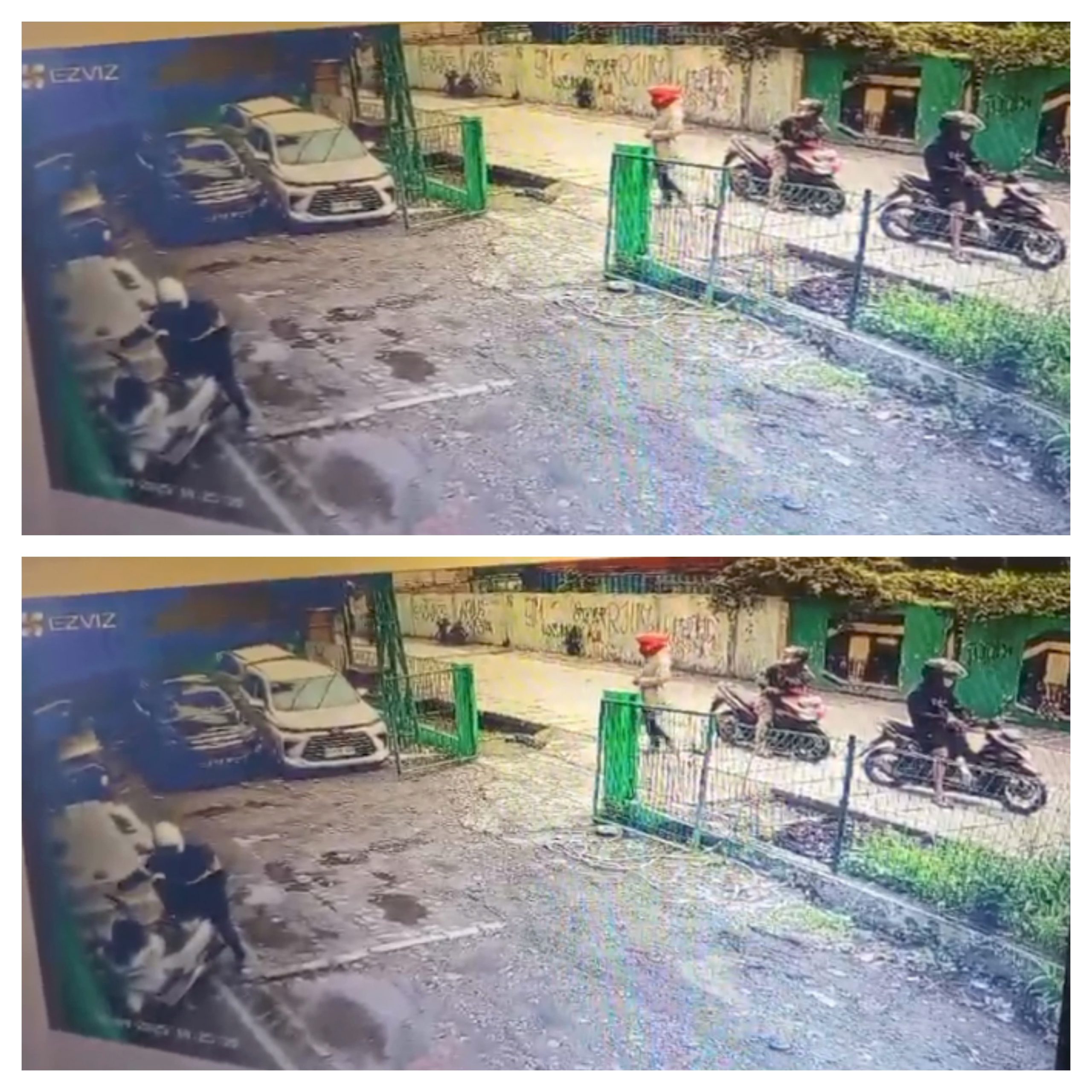 Kemudian, yang satu orang berusaha untuk mengambil motor dan mendorongnya, yang satu orang berusaha membantu untuk mendorong motor tersebut, sedangkan yang dua orang lagi, menunggu depan pintu pagar sambil sambil duduk di motornya. Setelah motor tersebut berhasil di dorong, kemudian para pelaku langsung kabur.