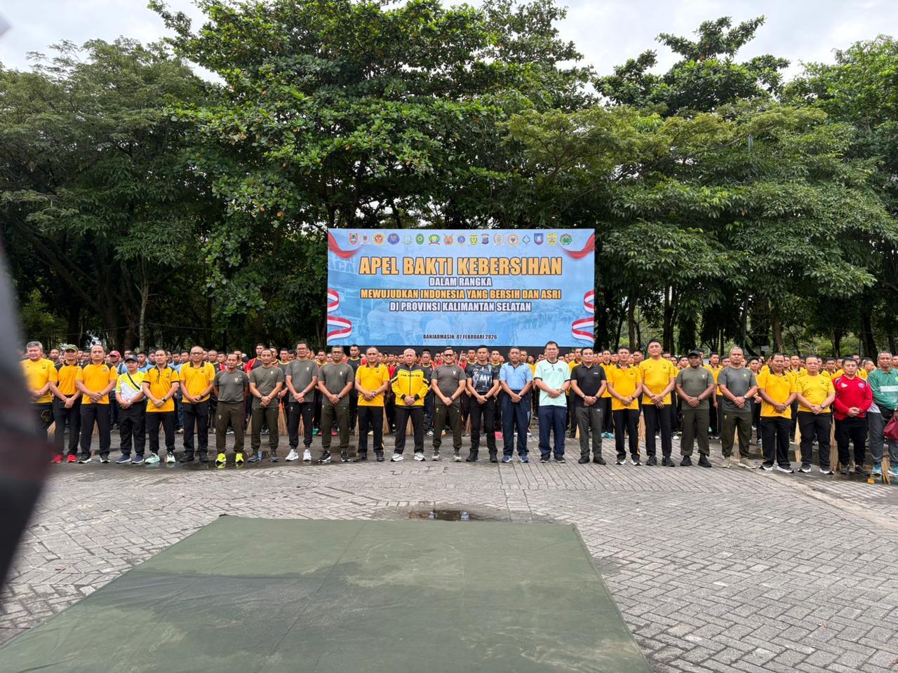 TNI AL, Banjarmasin – POROSNUSANTARA.COM | Komandan Banjarmasin Letkol Laut (P) Galih Nurna Putra, S.H., M.Tr.Opsla., beserta Forkopimda Kalimantan Selatan turut serta dalam Bakti Kebersihan bersama TNI, POLRI dan Pemerintah Daerah Kalimantan Selatan, bertempat di Lapangan Kamboja Banjarmasin, Jalan Anang Adenansi, Kertak Baru Ulu, Kecamatan Banjarmasin Tengah, Kota Banjarmasin, Kalimantan Selatan, Sabtu (07/02/2026).