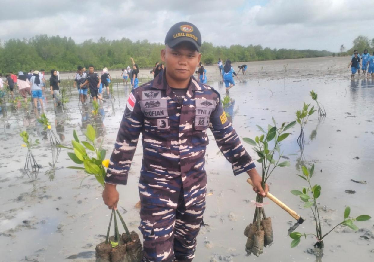 Lanal Bintan Bersama Siswa Siswi SMA Tanam Bakau Dalam Rangka Hari Menanam Pohon Sedunia