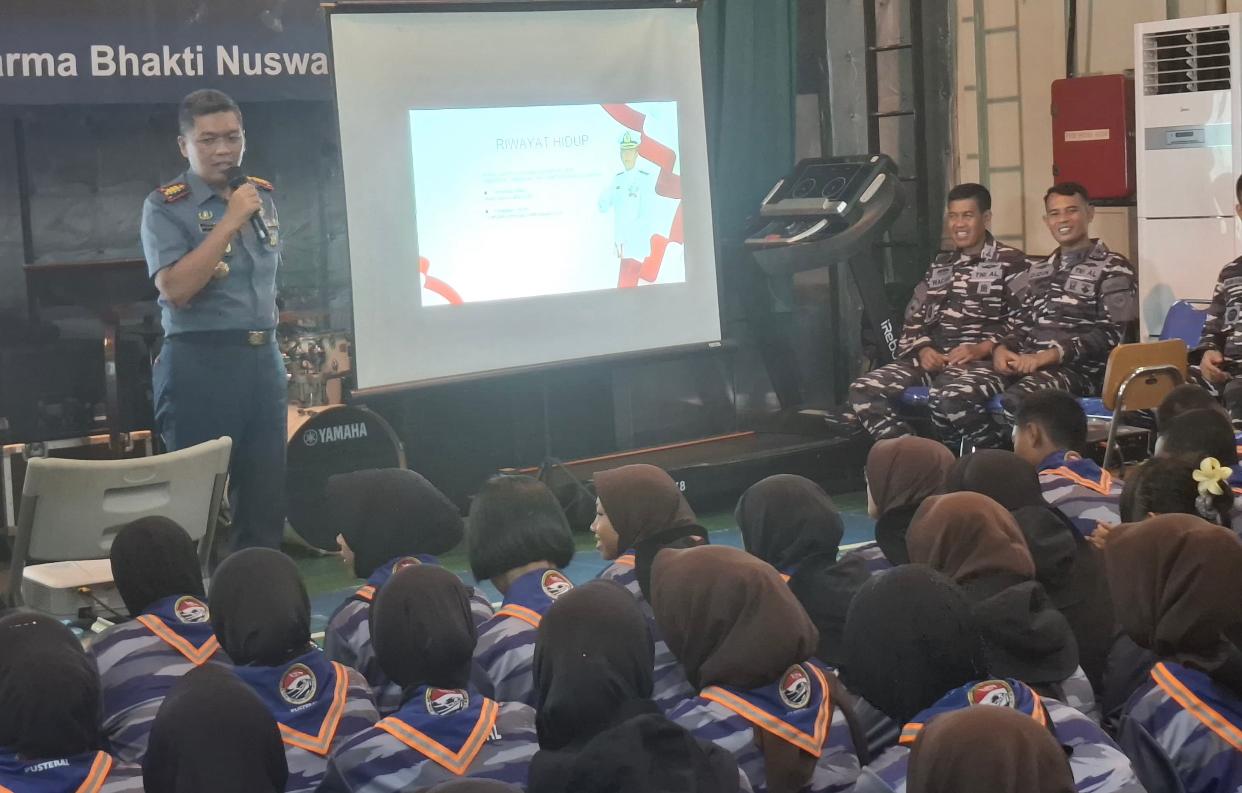 TNI AL, Bintan – POROSNUSANTARA.COM | Komandan Lanal Bintan Kolonel Laut (P) Dr. Eko Agus Susanto, S.E., M.M., didampingi Ketua Cabang 5 Korcab IV Kodaeral IV Ny. Erni Eko Agus Susanto dan Perwira Staf Lanal Bintan menyambut kedatangan peserta Pembinaan Pembentukan Karakter Maritim (PPKM) TA. 2025, yang berlangsung di Dermaga Lanal Bintan, Tanjung Uban, Rabu (26/11/25).
