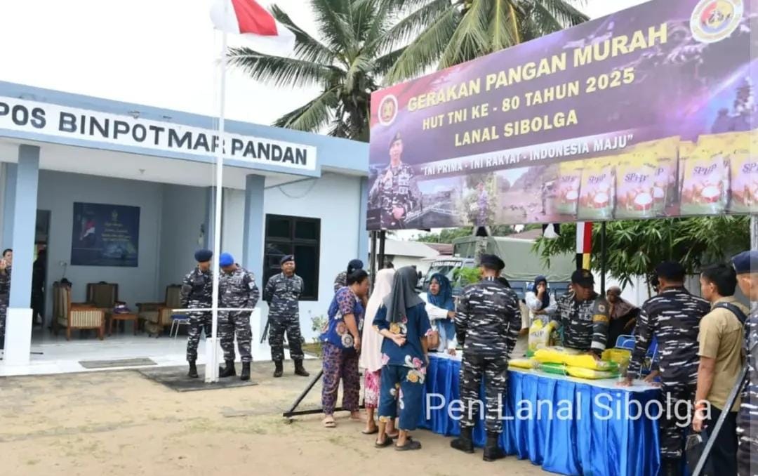 POROSNUSANTARA.COM | TNI AL, Tapteng,- Dalam rangka memperingati HUT Ke-80 TNI Tahun 2025, Lanal Sibolga menggelar kegiatan Gerakan Pangan Murah yang diadakan di Pos Binpotmar Pandan, Kelurahan Kalangan, Kecamatan Pandan, Kabupaten Tapanuli Tengah, Kamis (25/09/2025).
