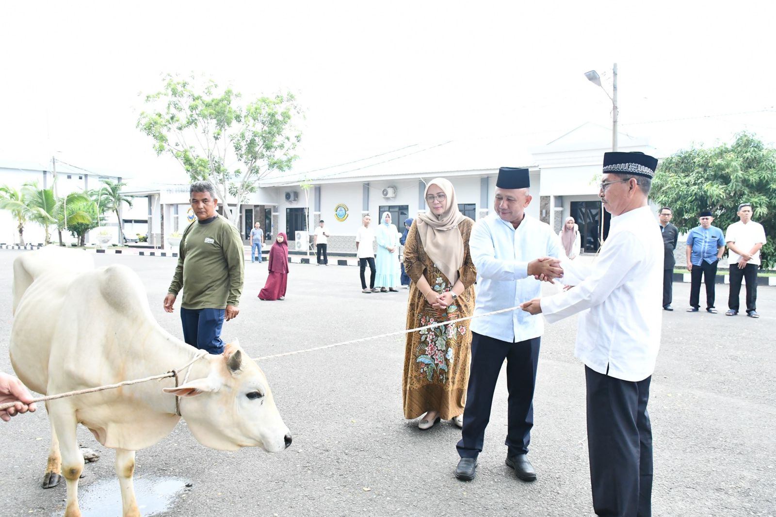 umlah 2 ekor sapi dan 17 ekor kambing kepada Panitia Qurban di Dermaga Lantamal I Untuk dilaksanakan penyembelihan dan dibagikan