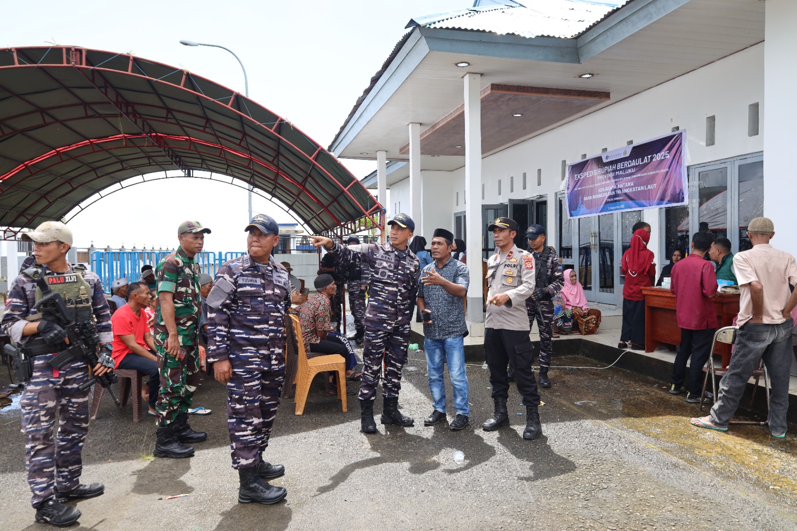 POROSNUSANTARA.COM | TNI AL, Ambon,- Tim Kesehatan Pangkalan TNI Angkatan Laut IX Ambon bekerjasama dengan Bank Indonesia melaksanakan Bakti Kesehatan dan Sosialisasi Cinta, Bangga, Paham Rupiah, bertempat di Pelabuhan Ambalau, Desa Ulima, Kecamatan Ambalau, Kabupaten Buru Selatan, Sabtu (02/08/2025).