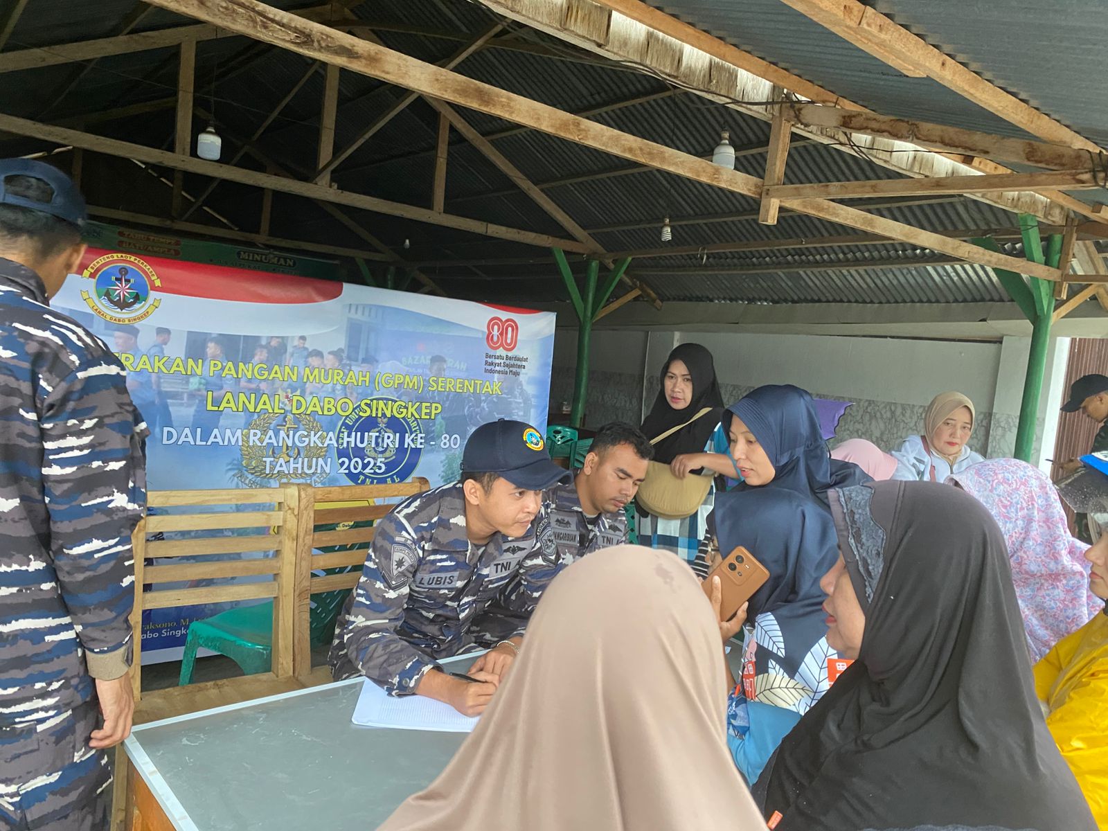 Masyarakat Antusias Sambut Gerakan Pangan Murah, Danlanal DBS Gelar Bazar di Primkopal Lanal Dabo Singkep Dalam Rangka HUT Ke-80 TNI AL