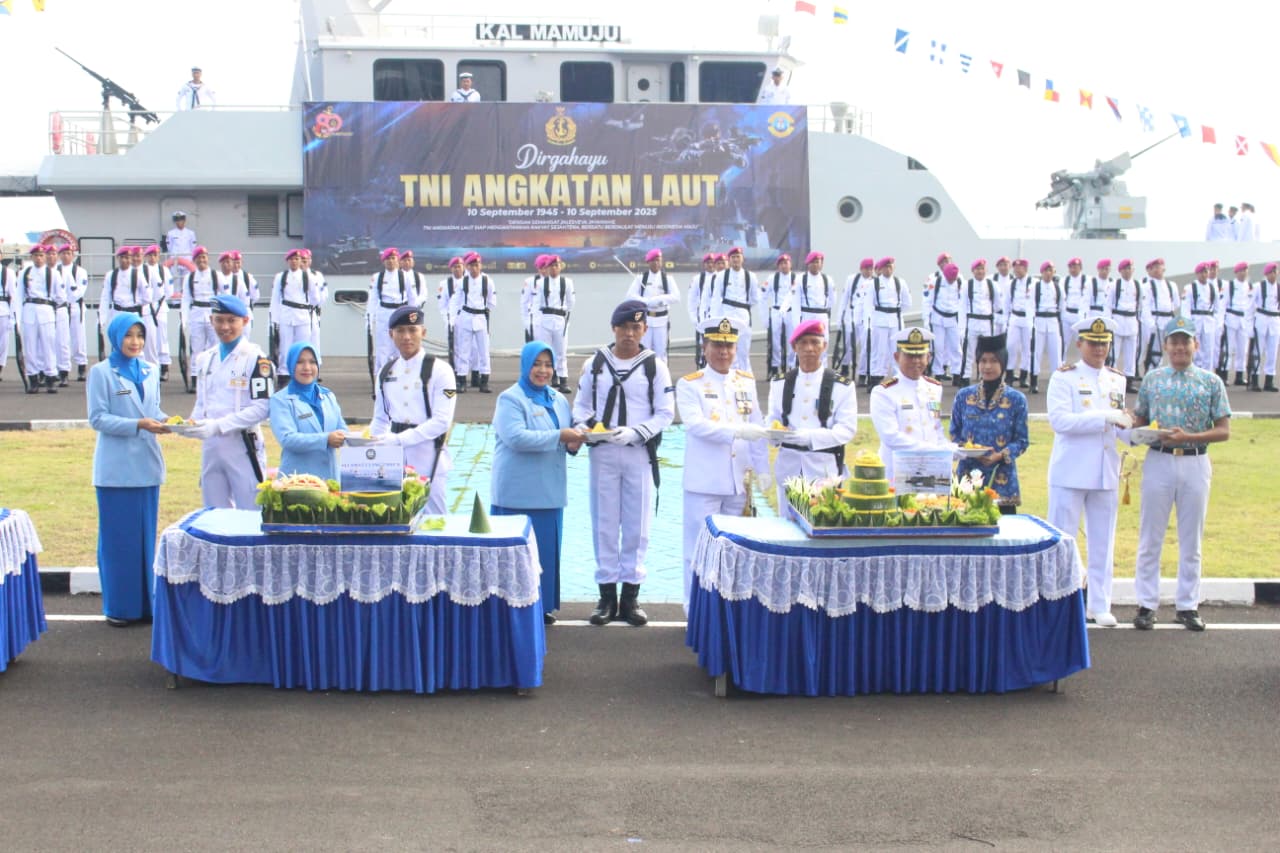 POROSNUSANTARA.COM | TNI AL, Makassar,- Komandan Satlinlamil 3 Kolonel Laut (P) Sulthon M. Firdaus, M.Tr. Opsla., mengikuti Upacara Peringatan HUT Ke-80 TNI Angkatan Laut Tahun 2025 yang bertema “Dengan Semangat Jalesveva Jayamahe TNI Angkatan Laut Siap Mengantarkan Rakyat Sejahtera, Bersatu Berdaulat Menuju Indonesia Maju”. Bertindak selaku Inspektur Upacara Komandan Kodaeral VI Laksda TNI Andi Abdul Aziz, S.H., M.M., bertempat di Dermaga Layang Mako Kodaeral VI Makassar, Rabu (10/9/2025).