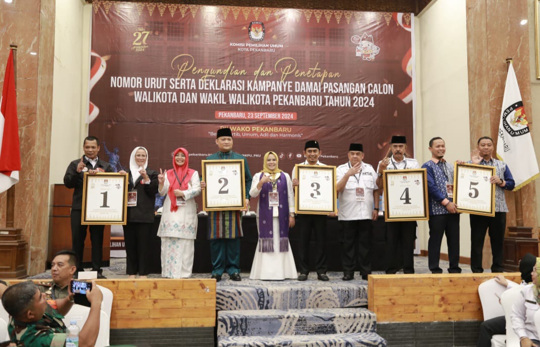 PEKANBARU | POROSNUSANTARA.COM – Lima pasangan bakal calon Wali Kota dan Wakil Wali Kota Pekanbaru dinyatakan memenuhi syarat dan telah ditetapkan oleh KPU Kota Pekanbaru menjadi calon peserta Piemilihan kepala daerah Tahun 2024.