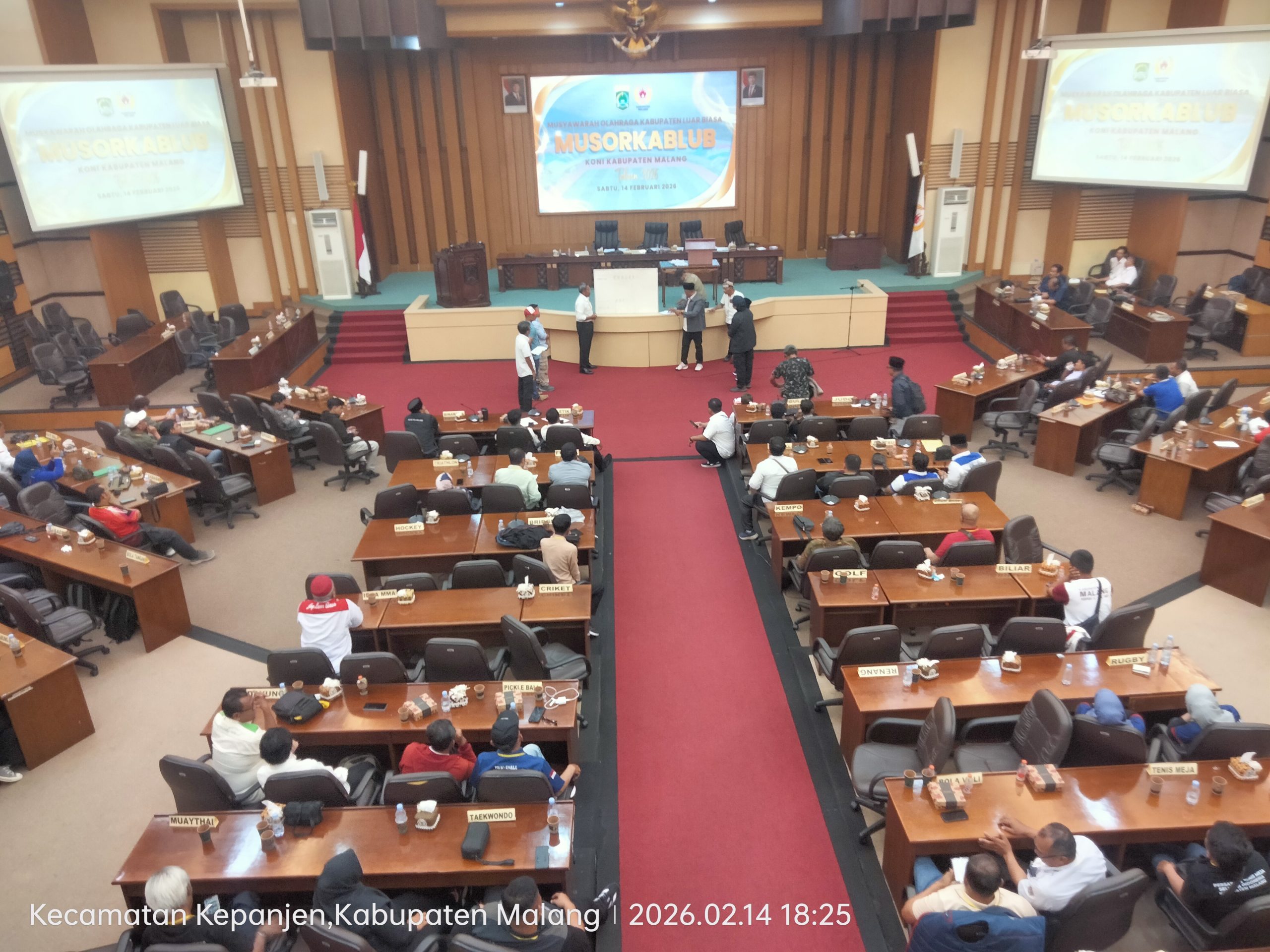 Malang | POROSNUSANTARA.COM – Musyawarah Olahraga Kabupaten Luar Biasa (Musorkablub) Komite Olahraga Nasional Indonesia (KONI) Kabupaten Malang tahun 2026 berlangsung dinamis di Gedung DPRD Kabupaten Malang, Sabtu (14/2/2026). Dalam forum yang dipimpin Mulyono tersebut, Darmadi resmi terpilih sebagai Ketua Umum KONI Kabupaten Malang periode 2026–2028.