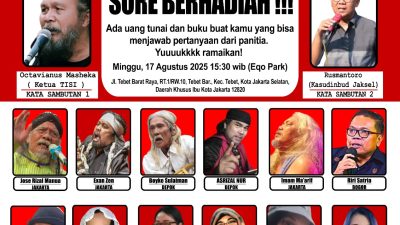 Pertanyaan ini dilontarkan langsung oleh Octavianus Masheka, Penyair dan Sastrawan yang juga Ketua Taman Inspirasi Sastra Indonesia (TISI) di Jakarta, Selasa pagi (30/9/2025) usai menyelenggarakan peluncuran (launching) buku antologi puisi bersama REPUBLIK PUITIK dan MANIFESTO JABODETABEK di PDS.HB.Jassin, TIM Jakarta, Minggu siang (28/9/2025).