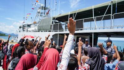 Turut hadir mendampingi Pangkoarmadal RI, Danguskamla I, Kapok sahli Kodaeral I, PJU Dankodaeral I, Korsmin Pangkoarmada RI, Komandan KRI Torani selaku Dansatgas, Komandan KRI Bubara beserta Personel KRI Torani, KD Kinabalu dan KD Ledang.