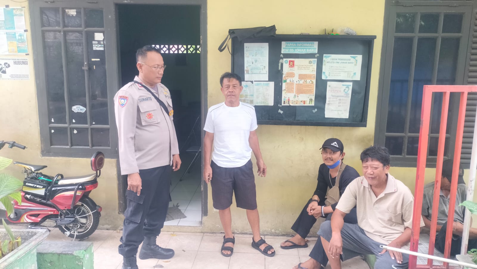 Kegiatan patroli pemukiman Aiptu Sunarto bertemu dengan Supriyanto dan warga yang lainnya di lingkungan RW 05 Johar Baru, sekaligus memberikan imbauan kamtibmas dan menyampaikan pesan dari Kapolres Metro Kombes Pol Susatyo Purnomo Condro, agar Bhabinkamtibmas mengajak warga untuk bersama-sama menjaga keamanan dan ketertiban lingkungan. Menjelang Pilkada 2024 yang aman dan kondusif.