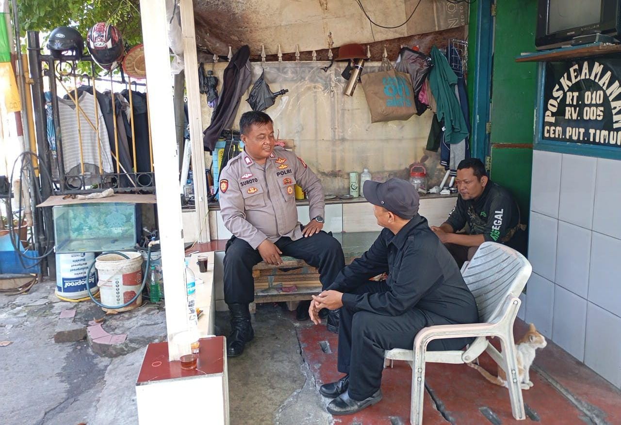 USANTARA.COM – Panit Sabhara Polsek Cempaka Putih Bripka Suroto melaksanakan patroli dialogis ke petugas keamanan lingkungan di Jalan Cempaka Putih Tengah I Cempaka Putih Jakarta Pusat. Kamis (5/9/2024)