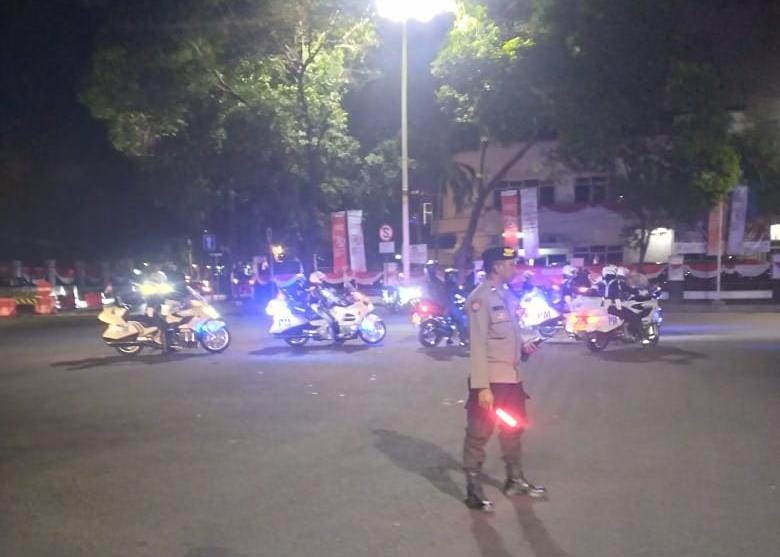 Aipda Dion selaku petugas Patmor melaksanakan patroli dan strong point di sepanjang Jalan Imam Bonjol menuju Diponegoro untuk memberikan rasa aman dan nyaman kepada masyarakat.