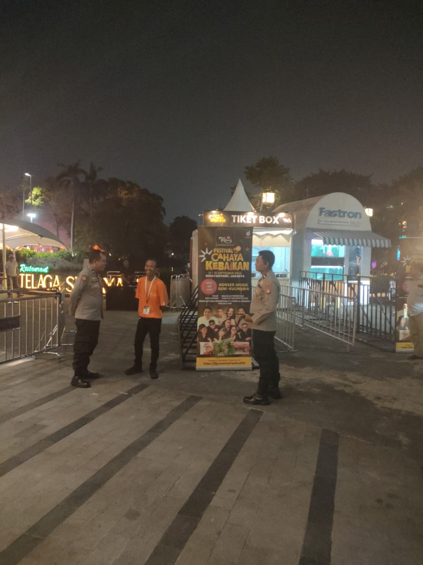 Aipda Alfian selaku Petugas Patroli 1051 melaksanakan patroli dan sambangi security event berikan imbauan kamtibmas agar senantiasa membantu untuk menjaga keamanan dan ketertiban, selalu waspada lakukan pemantauan dan monitoring, bantu lakukan pengaturan lalu lintas agar tidak terjadi kemacetan dan selalu imbau dan bantu pengunjung.