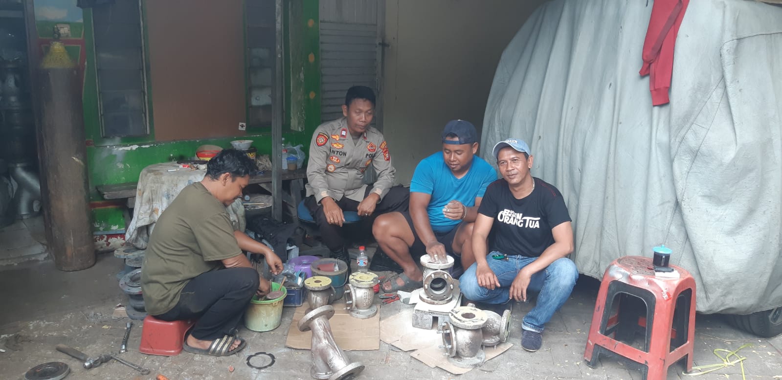 Selanjutnya dalam kegiatan patroli pemukiman Antonius AW sambangi warga selaku tukang perbaikan kran untuk memberikan himbauan terkait Kamtibmas serta mengajak warga masyarakat bersama-sama menjaga keamanan dan ketertiban serta kebersihan di lingkungan.