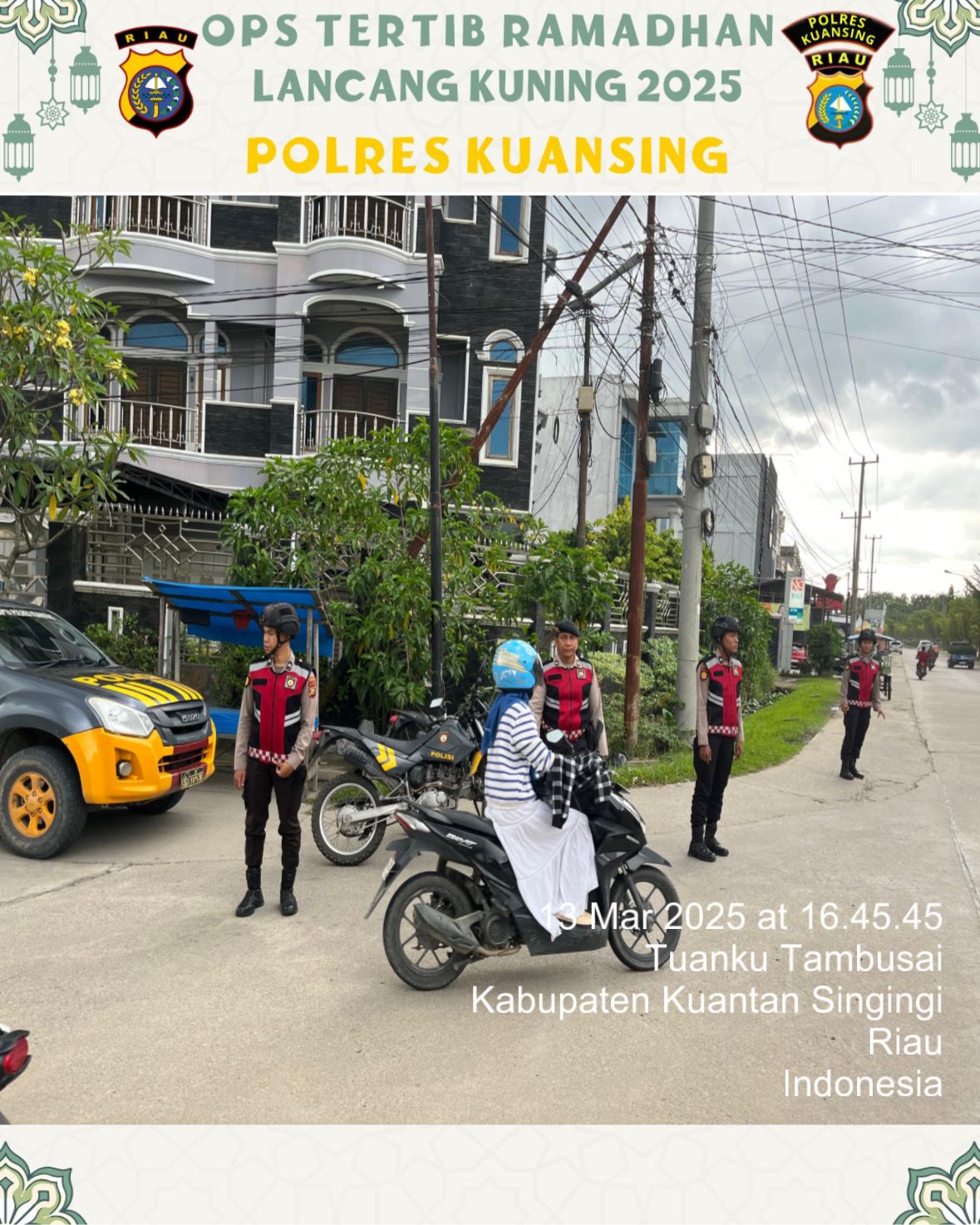 Polres Kuansing terus berkomitmen untuk menjaga keamanan dan ketertiban selama bulan Ramadhan dengan mengintensifkan patroli di titik-titik rawan gangguan Kamtibmas. Kegiatan pengamanan ini akan terus dilakukan secara rutin untuk memastikan masyarakat dapat menjalankan ibadah dan aktivitas Ramadhan dengan aman dan nyaman.