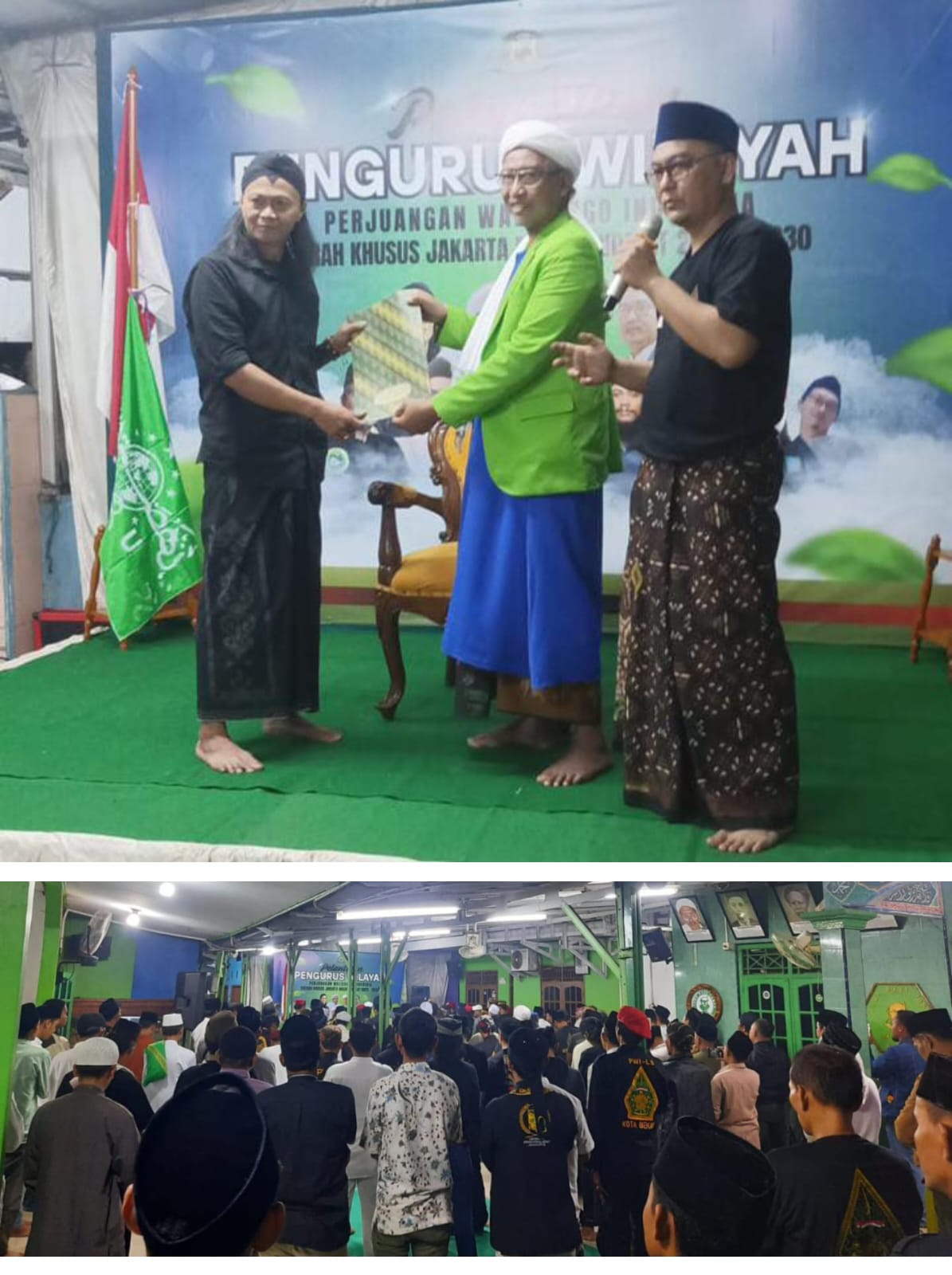 Wakil Ketua PWI LS Pusat KH Dr Yusuf Mubarok dan Sekjen PWI LS Pusat KH Ken Rahmatullah menyerahkan SK PWI LS DK Jakarta kepada KH Mukhlis Fadhil sebagai Ketua PWI LS DPW Jakarta.