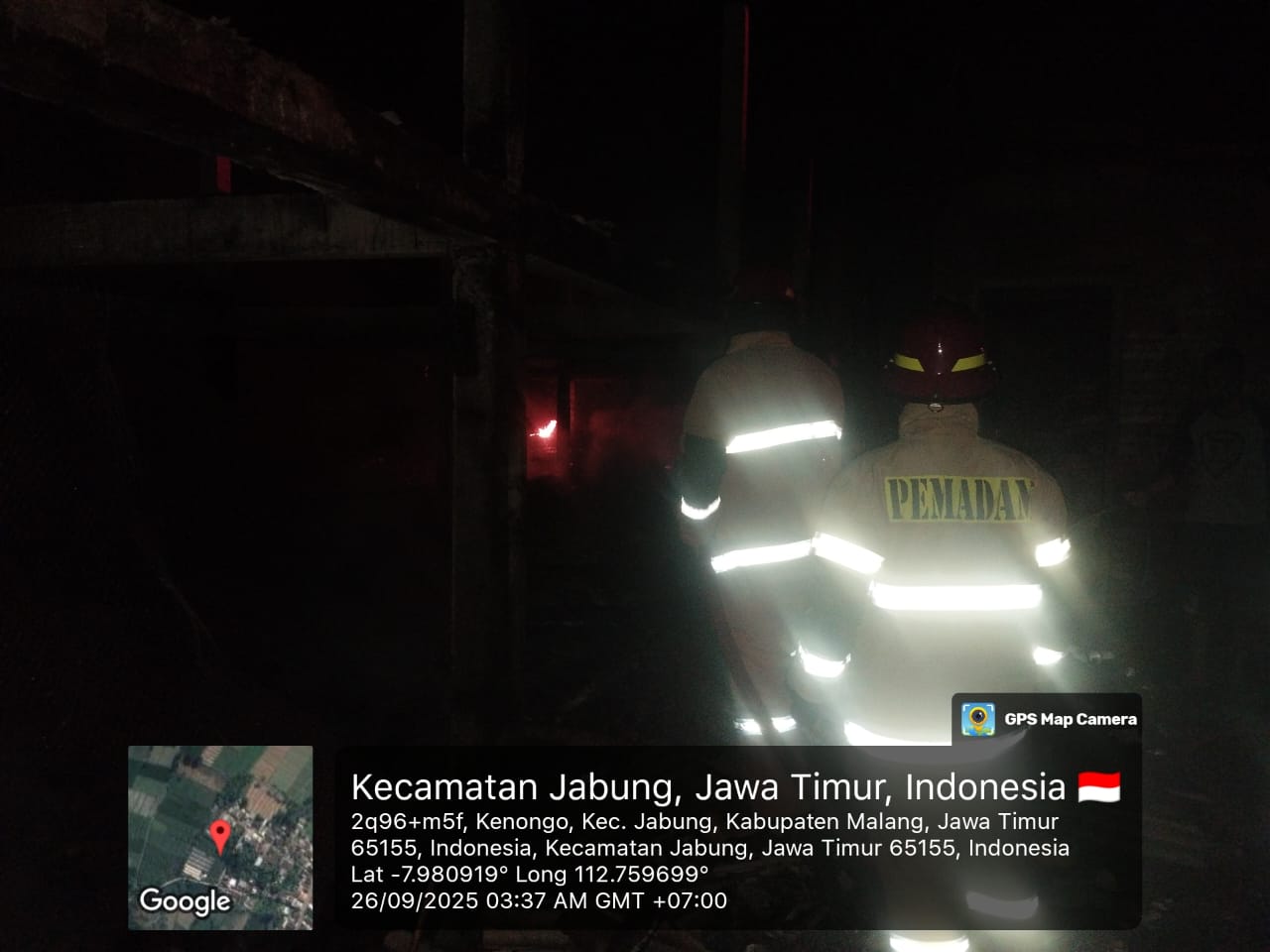 Malang |POROSNUSANTARA.COM – Kebakaran melanda sebuah kandang ayam di Desa Kenongo, Kecamatan Jabung, Kabupaten Malang, pada Jumat (26/9/2025) dini hari. Insiden yang terjadi sekitar pukul 02.00 WIB ini diduga dipicu oleh percikan api dari alat penghangat kandang berbahan bakar arang.