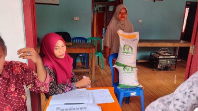 Sudah tuntas tersalurkan jumlahnya 20kg beras terdiri 2 karung dan perkarungnya 10Kgimbuh Sekdes Mulyati.