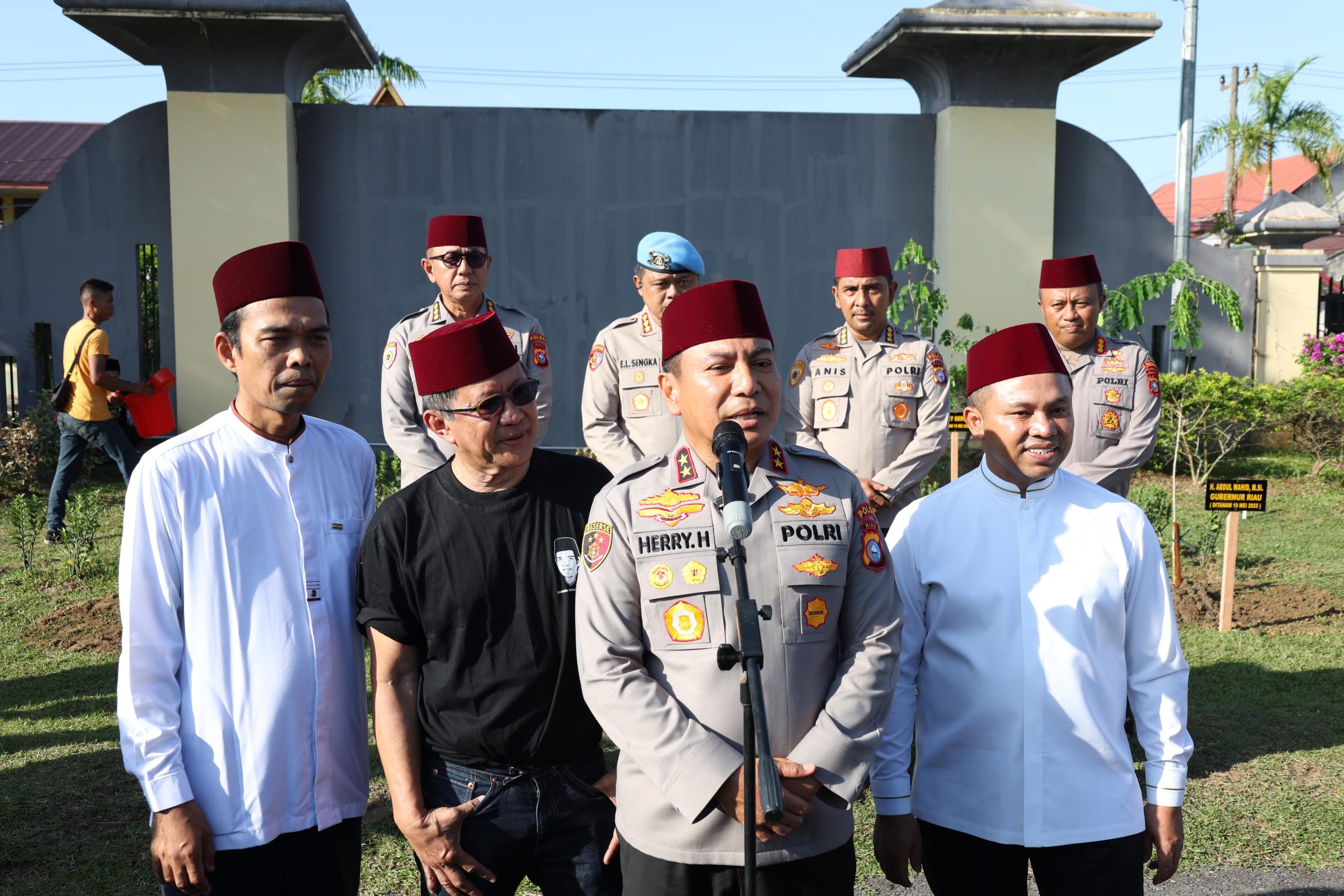 Penanaman Pohon Bersama Ustad Abdul Somad dan Rocky Gerung Warnai Pagi di Halaman Mapolda Riau