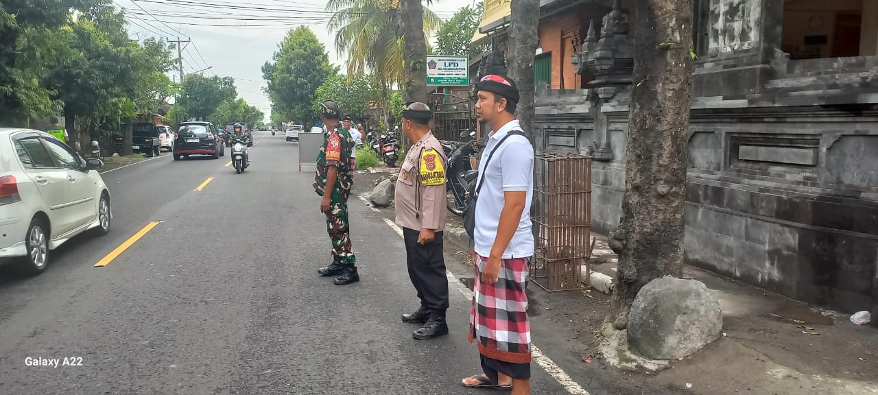BLAHBATUH-GIANYAR,porosnusantara.com– TNI Polri melalui Bhabinkamtibmas Desa Blahbatuh, Aiptu Gusti Putu Aryabawa, bersama Babinsa Desa Blahbatuh, Serda I Ketut Darmayasa, melakukan pengamanan dan pengaturan lalu lintas pada kegiatan Upakara Ngratep atau Melaspas Ratu Ayu Pura Kahyangan Tiga Desa Adat Darmatiaga, Desa Blahbatuh. Upacara ini merupakan bagian dari prosesi keagamaan yang penting bagi masyarakat setempat, yang dilaksanakan setelah selesai perbaikan atau Ngodakin Ratu Ayu Pura setempat pada Minggu, 23 Februari 2025.