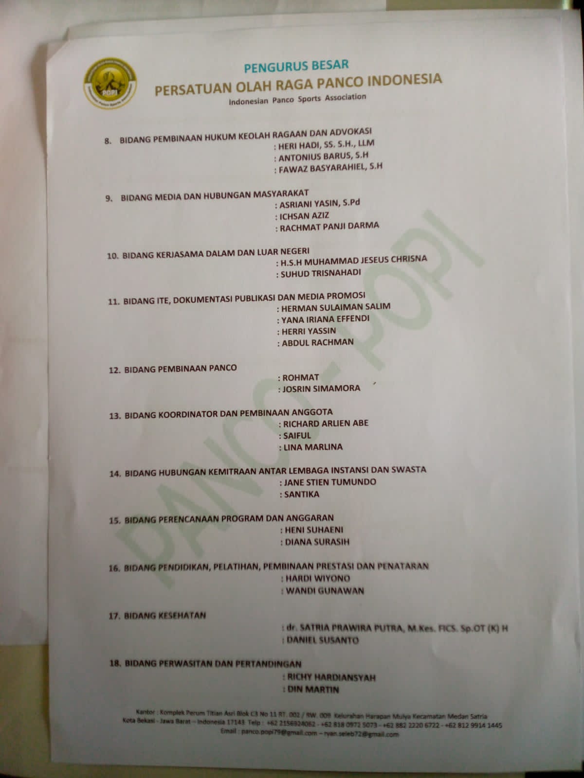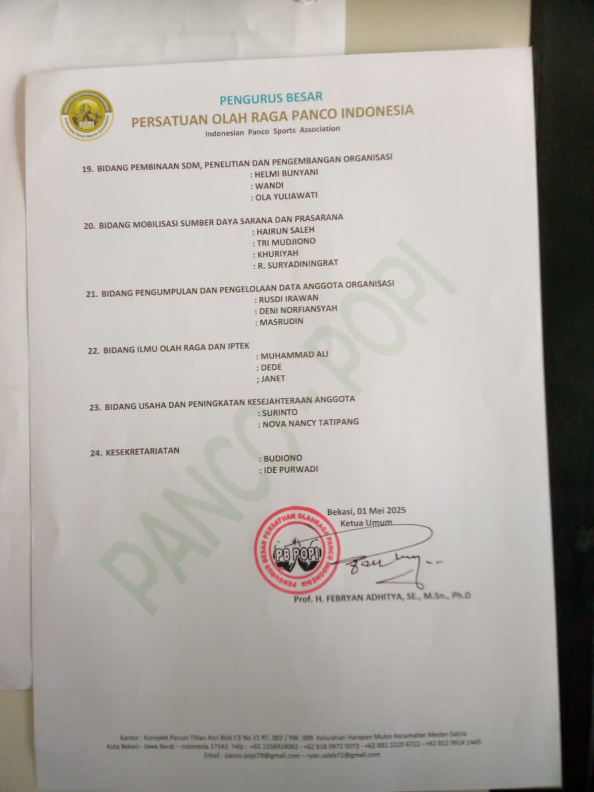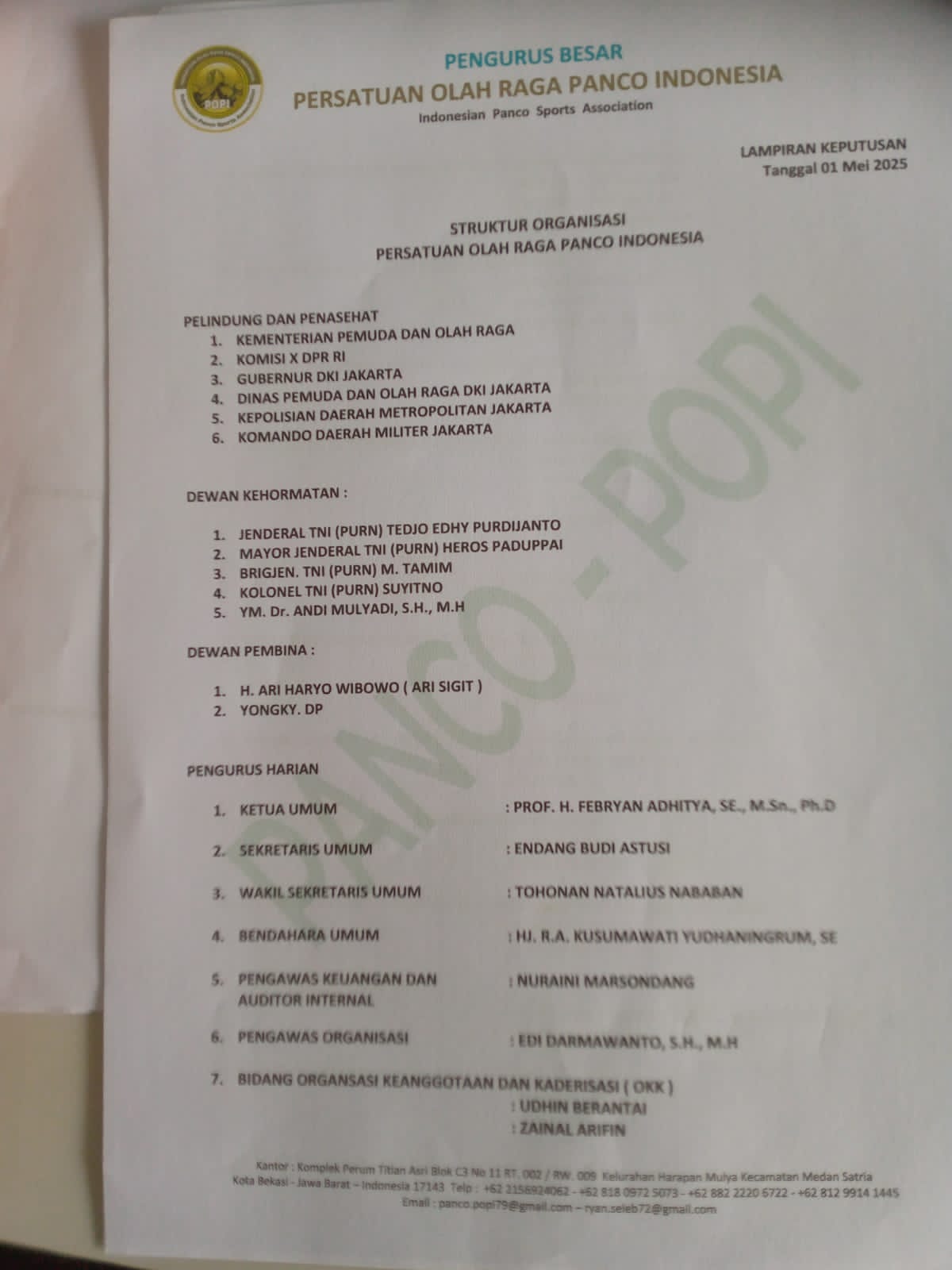 Ini Susunan Pengurus Besar POPI 2025-2030