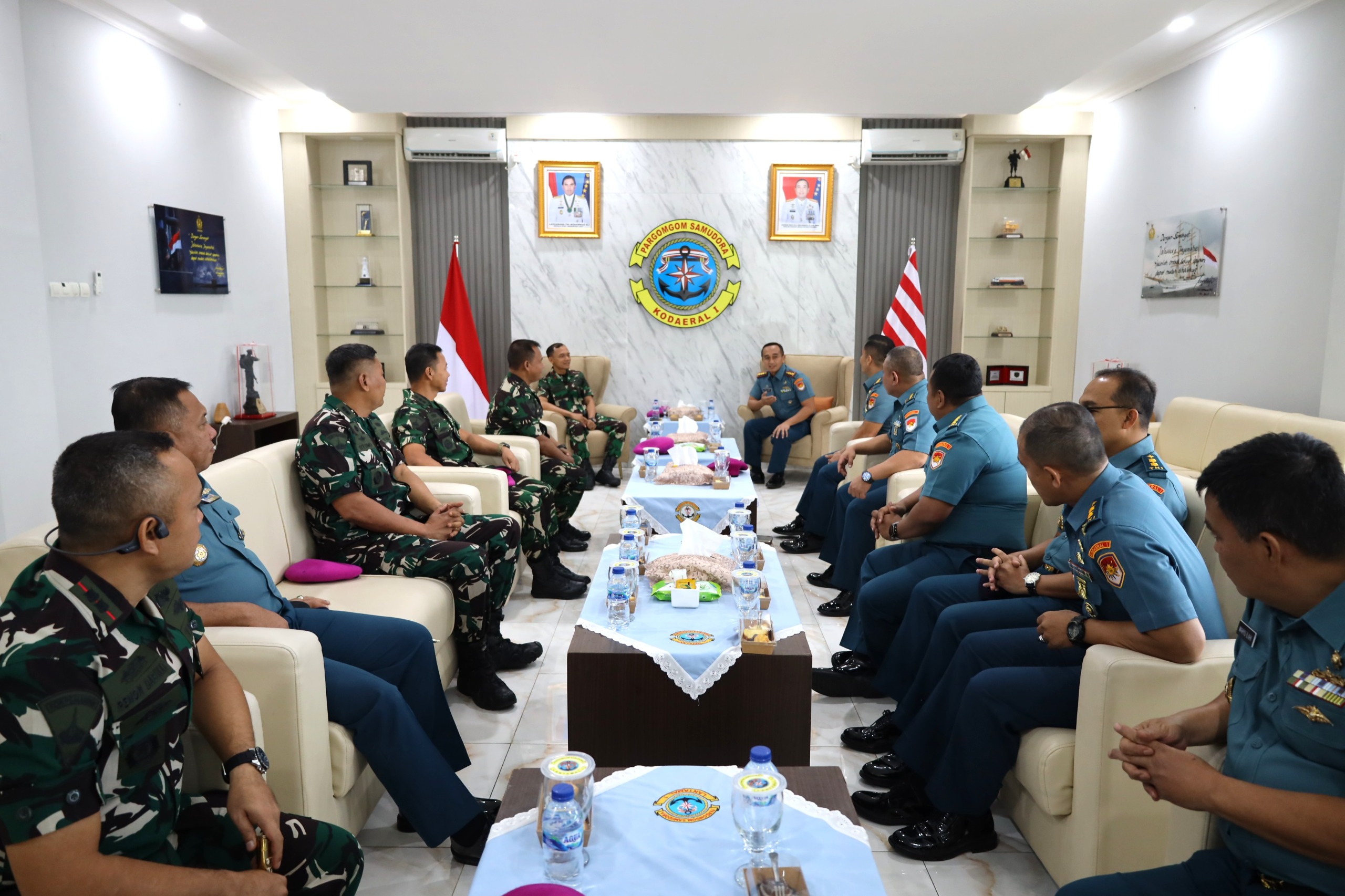 POROSNUSANTARA.COM | TNI AL, Belawan,- Komandan Kodaeral I Laksamana Muda TNI Deny Septiana, S.I.P., M.A.P., diwakili Wadan Kodaeral I Kolonel Laut (P) Fajar Tri Rohadi, S.E, menerima Courtesy Call Danpasmar I Brigjen TNI (Mar) Ena Sulaksa, S.E., beserta rombongan, bertempat di Ruang VIP Makodaeral I, Rabu (28/8/2025).