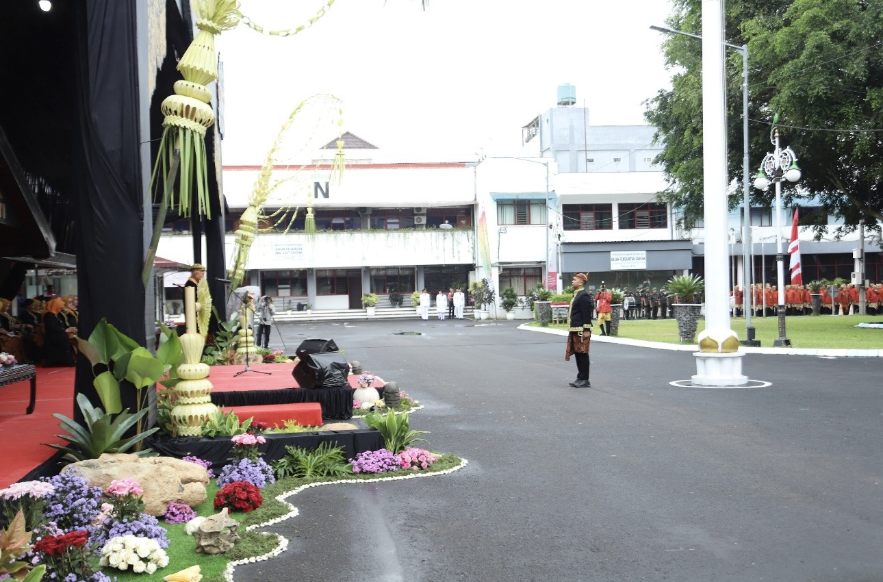 Dalam upacara yang penuh kekhidmatan tersebut, Bupati Sanusi bersama seluruh peserta upacara mengenakan busana adat khas Kabupaten Malang berwarna hitam sebagai simbol penghormatan terhadap nilai budaya dan sejarah yang menjadi akar jati diri masyarakat Malang Raya.