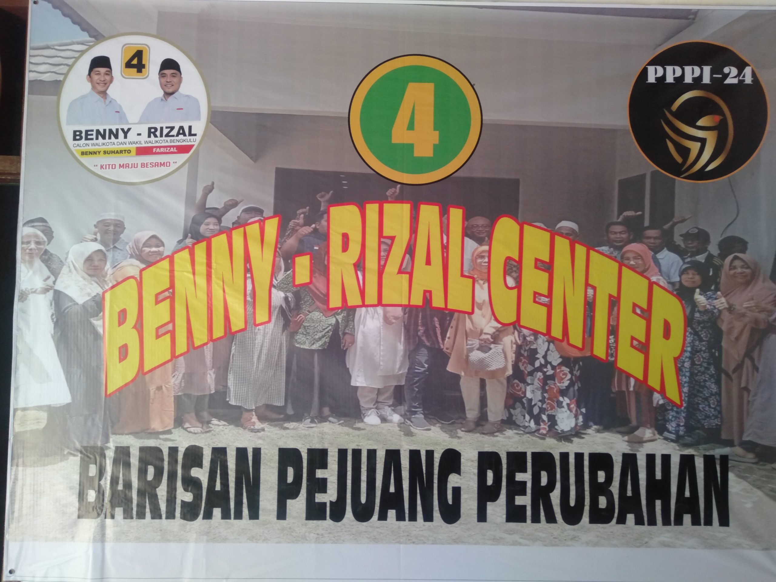 KOTA BENGKULU | POROSNUSANTARA.COM – Memperkuat kemenangan pasangan calon Walikota dan Wakil Walikota Bengkulu Benny – Ferizal Nomor 4 , Barisan Pejuang Perubahan membetuk posko Beny – Rizal Center, Ketua Beny – Rizal Center Ujang Mulkati,M.Pd memberikan keterangan kepada porosnuaantara.com 28/09/2024 bahwa terbentuknya posko ini tentu dalam rangka menambah amunisi baru pemenang pasangan calon walikota dan wakil walikota Beny Suharto dan Ferizal , Ujang Mulkati yakin dan optimis pasangan ini akan menjadi pemenang di kontestasi di pilkada Kota Bengkulu ” Pasangan ini ad