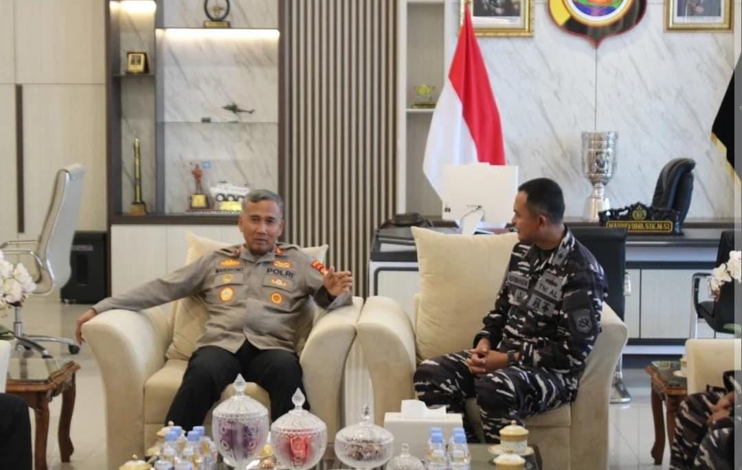 POROSNUSANTARA.COM | TNI AL, Bengkulu,- Komandan Pangkalan TNI Angkatan Laut (Danlanal) Bengkulu Letkol Laut (P) Nurwahidin, S.H., M.Tr. Opsla., didampingi Perwira Staf, melaksanakan kunjungan silaturahmi (Courtesy Call) kepada Kepala Kepolisian Daerah (Kapolda) Bengkulu Irjen Pol Mardiyono, S.I.K., M.Si., bertempat di Markas Kepolisian Daerah Bengkulu, Jalan Adam Malik, Sidomulyo, Gading Cempaka, Bengkulu, Senin (15/9/2025).