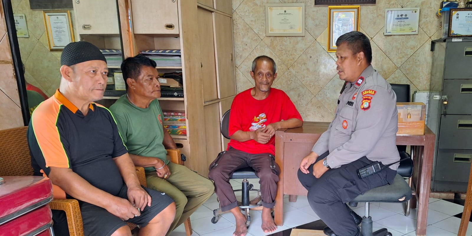 JAKARTA | POROSNUSANTARA.COM – Aiptu Anwarudin Anggota Asisten Binmas Polsek Sawah Besar melaksanakan kegiatan sambang wilayah di pemukiman dan bertemu dengan warga yang salah satunya bernama bapak Surya di Pos RW 02 jalan Pintu Air V Pasar Baru Sawah Besar, Selasa (20/8/2024).