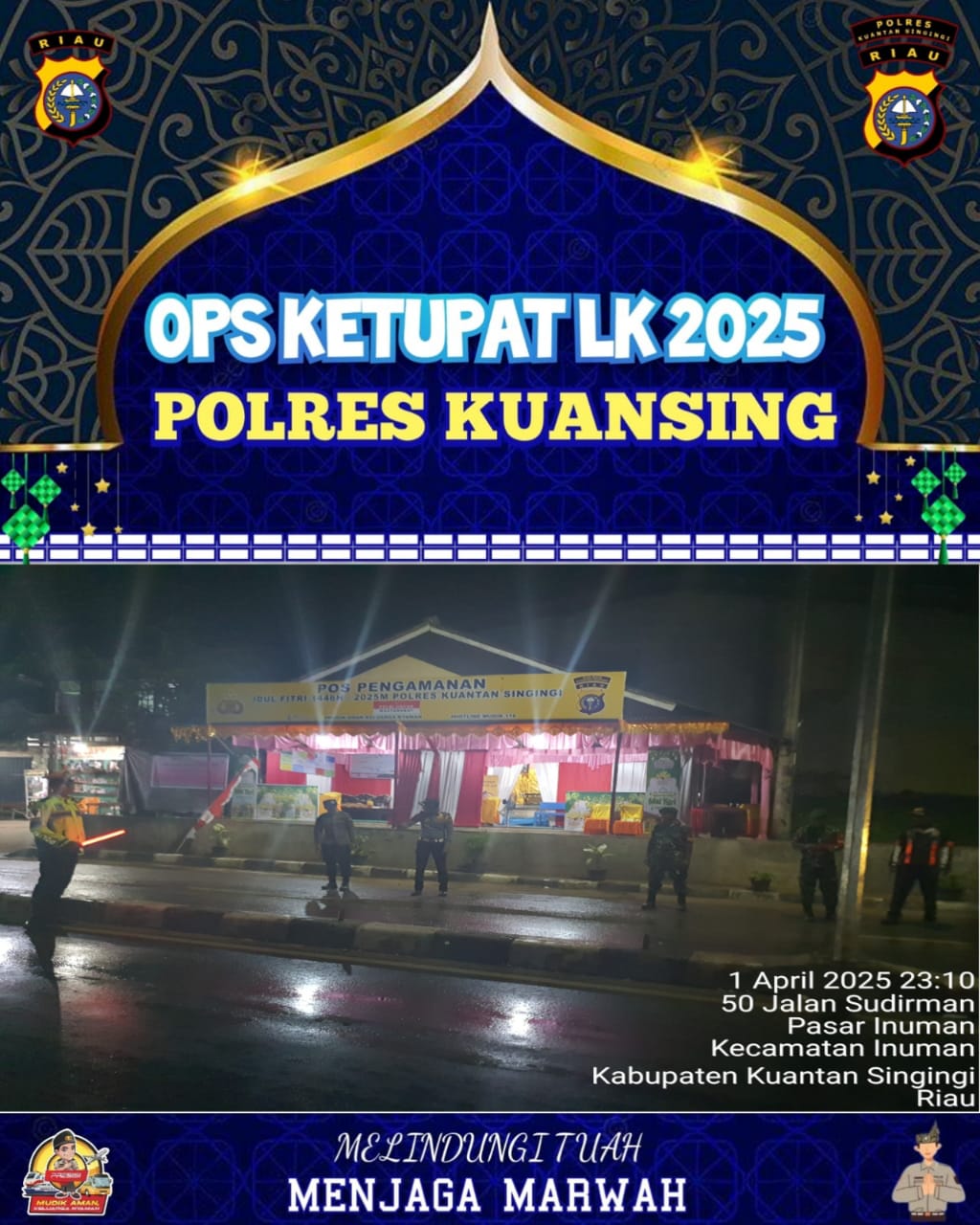 Pengaturan lalu lintas ini dilaksanakan pada Selasa, 1 April 2025, mulai pukul 23.00 WIB hingga selesai. Personel yang terlibat dalam kegiatan ini terdiri dari berbagai instansi yang tergabung dalam Pos Pam, antara lain TNI : 2 personel, Polri : 11 personel, Satpol PP : 2 personel, Dinas Kesehatan (Dinkes) : 2 personel, Dinas Perhubungan (Dishub) : 3 personel dan Badan Penanggulangan Bencana Daerah (BPBD) : 2 personel. Adapun lokasi pengaturan lalu lintas difokuskan di Jalan Lintas Teluk Kuantan – Rengat, Desa Pasar Inuman, Kecamatan Inuman, yang merupakan jalur utama yang dilalui pemudik.