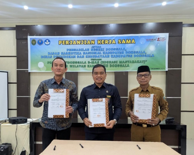 “Donggala E-Mas” merupakan wujud kolaborasi PN Donggala bersama dengan Badan Narkotika Nasional (BNN) Kabupaten Donggala dan Dinas Pendidikan dan Kebudayaan Kabupaten Donggala.
