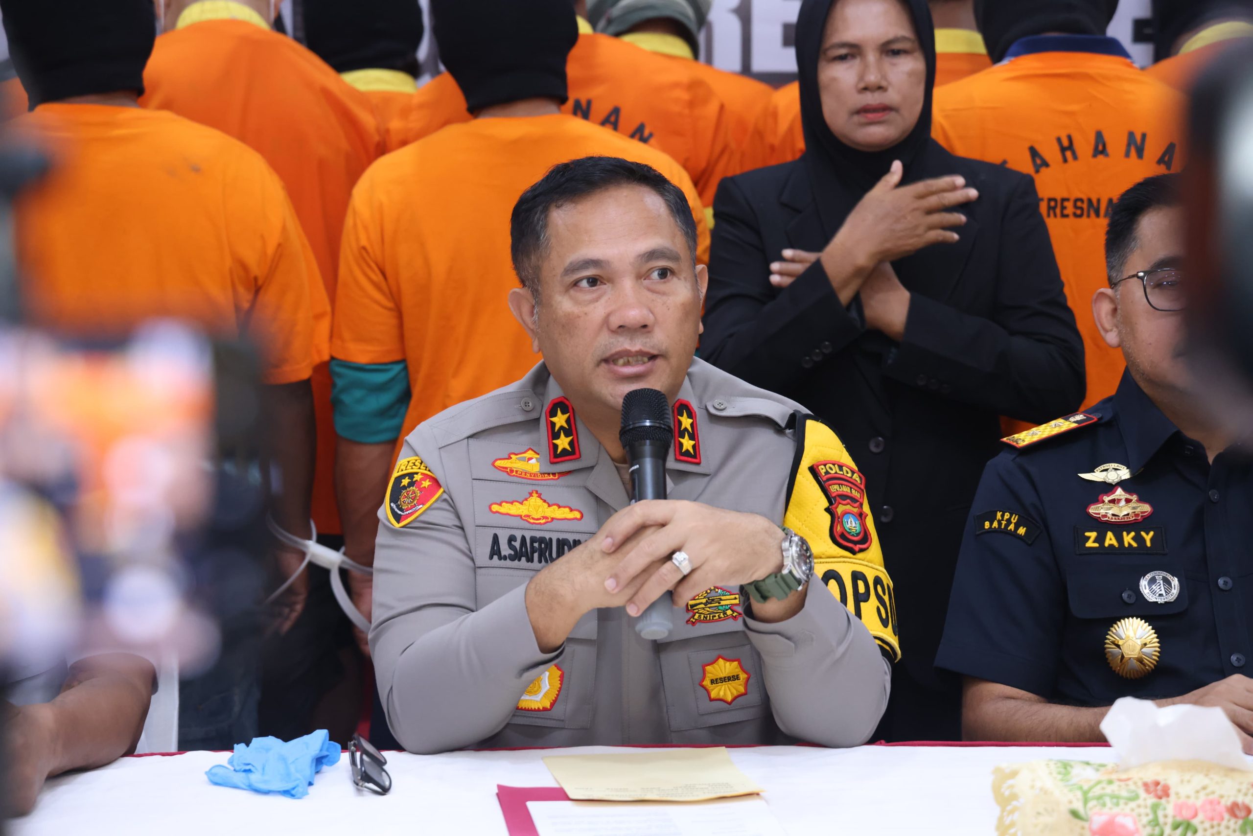Batam, porosnusantara.com- Polda Kepri kembali menunjukkan komitmennya dalam memerangi peredaran narkotika dan obat-obatan berbahaya dengan mengungkap kasus Tindak Pidana Narkotika sebanyak 19 kasus dengan jumlah tersangka sebanyak 26 orang yang terdiri dari 24 orang laki-laki dan 2 orang perempuan. Hal tersebut disampaikan oleh Kapolda Kepri Irjen. Pol. Asep Safrudin, S.I.K., M.H., pada saat Konferensi Pers di Loby Utama Polda Kepri. Rabu (26/3/2025).