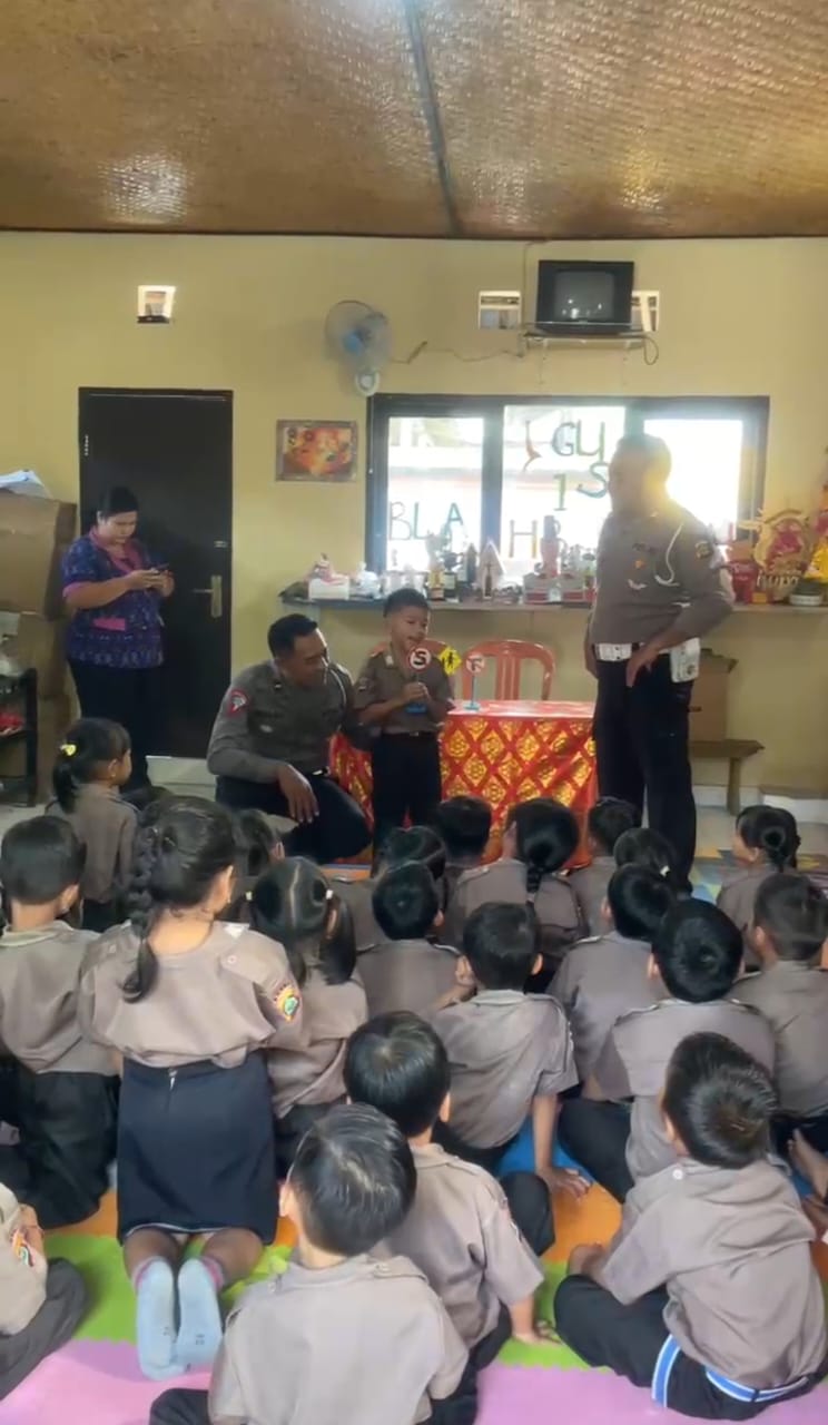 BLAHBATUH, porosnusantara.com-GIANYAR, Polsek Blahbatuh Polres Gianyar melalui Unit Lalu Lintas kembali hadir untuk memberikan sosialisasi kepada siswa, kali ini bertempat di TK Lila Kumara, Desa Buruan pada Selasa, 18 Februari 2025. Kegiatan ini merupakan bagian dari program Polisi Sahabat Sekolah, yang bertujuan untuk mengedepankan interaksi humanis dengan anak-anak, sekaligus memberikan pemahaman sejak dini tentang pentingnya keselamatan dan tata tertib berlalu lintas.