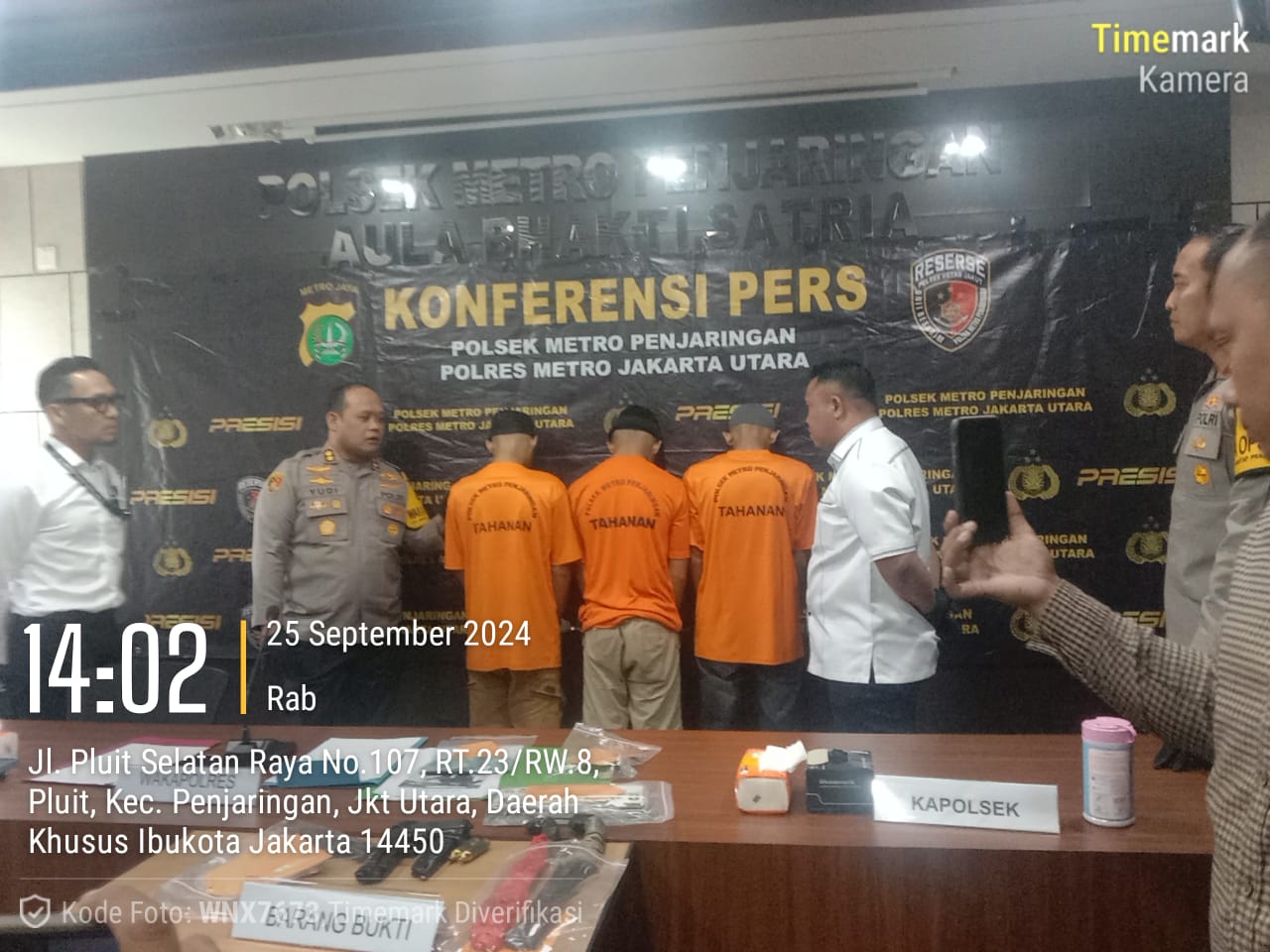 Polsek Metro Penjaringan menangkap empat pria berinisial IF, AA, MA, dan DF yang menjadi pelaku pencurian sepeda motor menggunakan senjata tajam dan senjata air softgun saat beraksi di kawasan Pantai Indah Kapuk (PIK) Penjaringan Jakarta Utara.