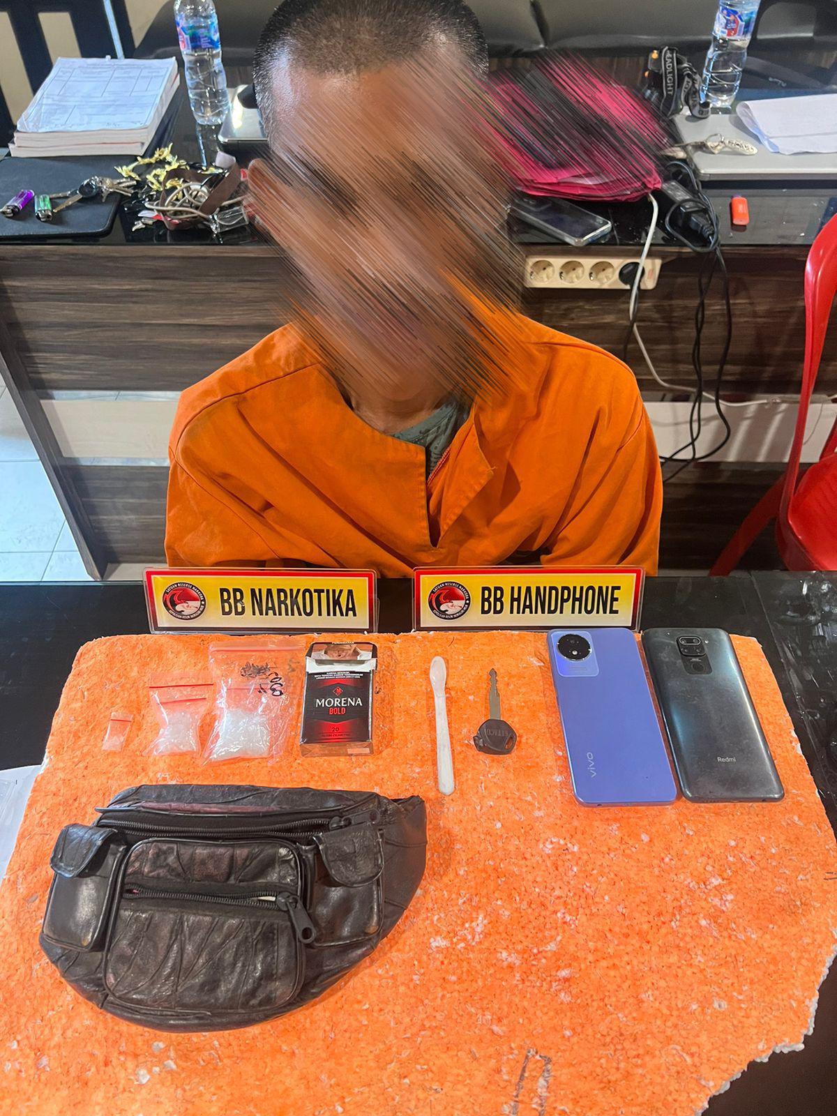Informasi mengenai transaksi ini diterima dari masyarakat dan segera ditindaklanjuti oleh tim Sat Res Narkoba. Setelah memastikan keberadaan tersangka, tim melakukan penggeledahan yang menghasilkan barang bukti berupa satu paket shabu dalam tas selempang, dua paket shabu dalam kotak rokok, serta sejumlah barang lainnya, seperti sepeda motor, dan dua unit ponsel,” jelasnya.