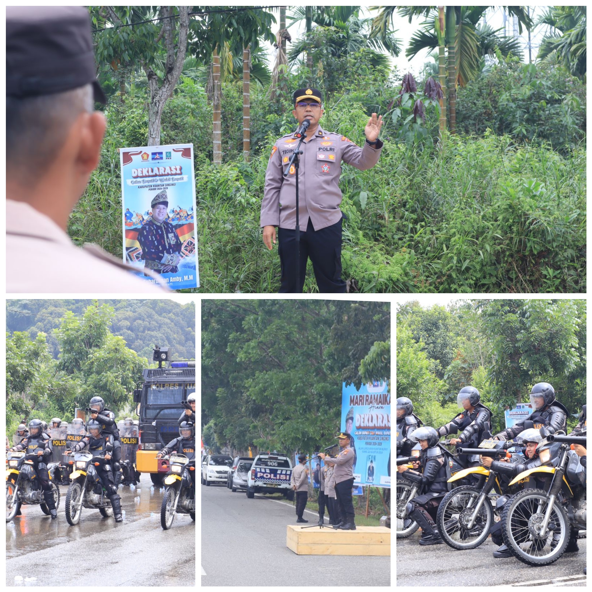 TELUKKUANTAN, RIAU | | POROS NUSANTARA.COM – Polres Kuansing menggelar gladi bersih simulasi pengamanan dalam rangka persiapan Operasi Mantap Praja Tahun 2024. Kegiatan yang berlangsung di Jalan Rusdy S. Abrus, Kecamatan Kuantan Tengah, Kabupaten Kuansing, Senin (26/8/2024) dimulai pada pukul 09.15 WIB dan dipimpin langsung oleh Kapolres Kuansing AKBP Pangucap Priyo Soegito, S.I.K., M.H.