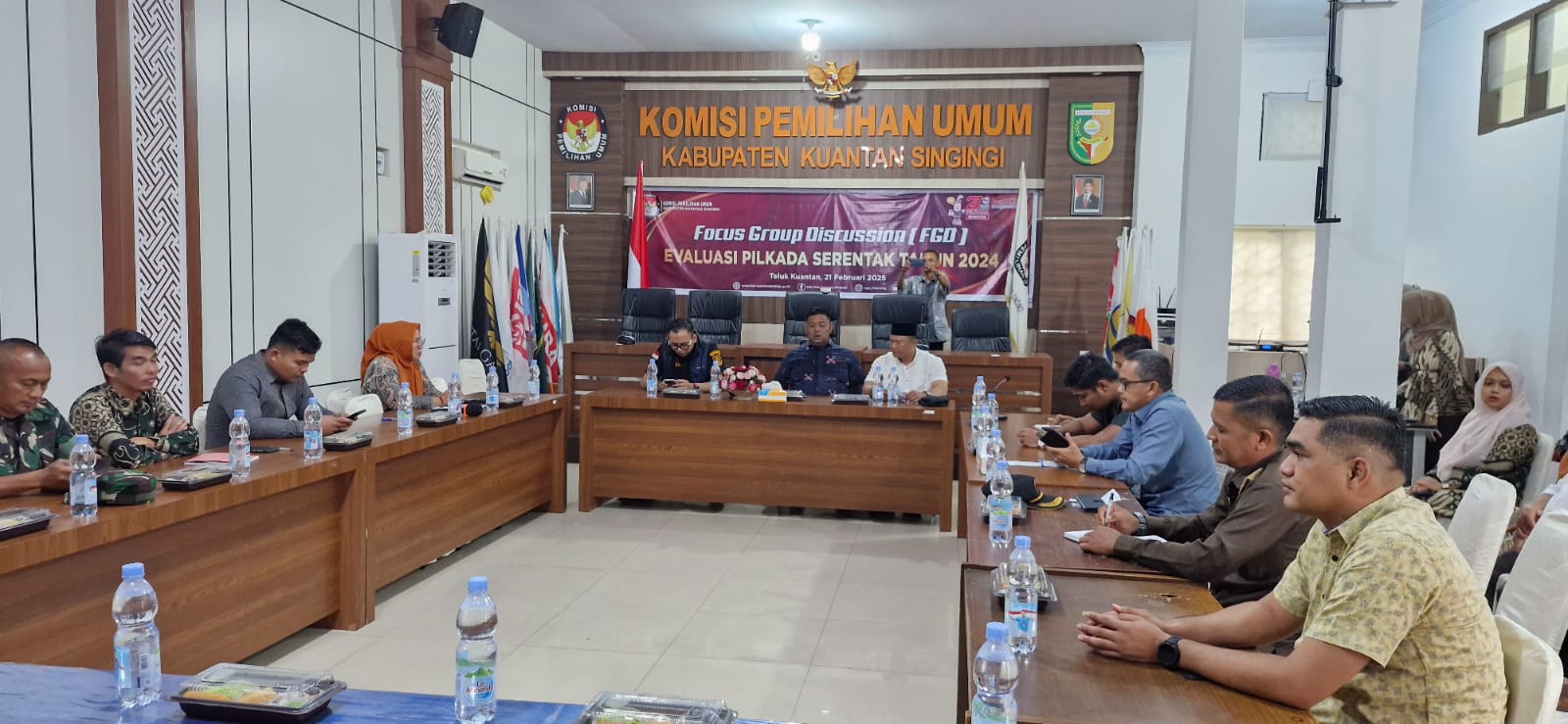 “Kegiatan ini bertujuan untuk mengevaluasi penyelenggaraan Pemilihan Kepala Daerah Bupati dan Wakil Bupati Kuansing. Hasil dari FGD tingkat Kabupaten ini akan diteruskan ke tingkat Provinsi untuk dijadikan bahan evaluasi lebih lanjut,” ungkapnya.