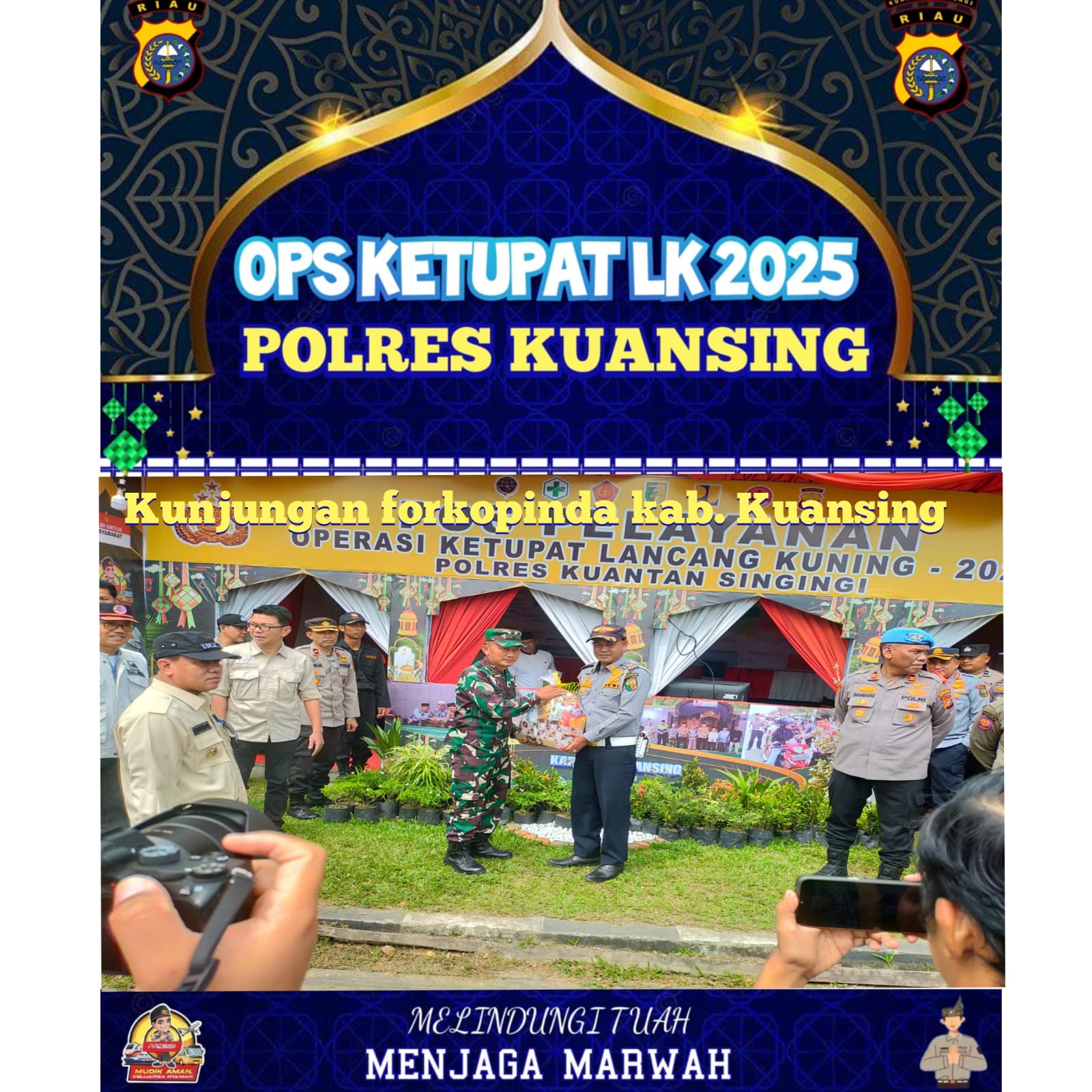 KUANTANSINGINGI, porosnusantara.com– Polres Kuansing menyelenggarakan kegiatan kunjungan oleh Forkopimda Kabupaten Kuansing ke Pos Pam Ketupat Lancang Kuning Tahun 2025 yang berlokasi di Kecamatan Kuantan Tengah, Kabupaten Kuansing Pada hari Jumat (28/3/2025) pukul 10.00 WIB. Kunjungan ini merupakan bagian dari rangkaian kegiatan Ops Ketupat Lancang Kuning 2025 untuk memastikan kesiapan dan keamanan pelaksanaan Pos Pelayanan Lebaran.