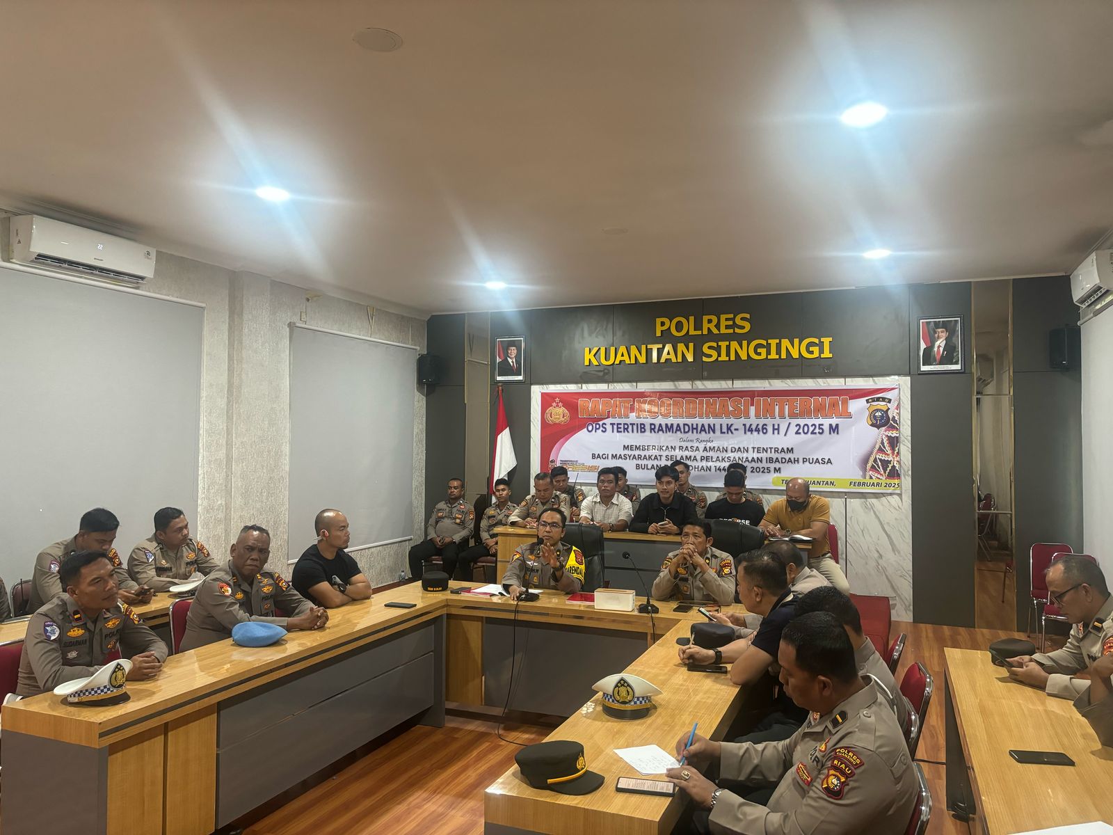 KUANTAN SINGINGI,Porosnusantara.com– Dalam rangka menjaga keamanan dan ketertiban masyarakat selama bulan suci Ramadhan 1446 H/2025 M, Polres Kuantan Singingi (Kuansing) menggelar Rapat Koordinasi Internal Operasi Tertib Ramadhan Lancang Kuning (LK)-1446 H/2025 M. Kegiatan ini bertujuan untuk memastikan pelaksanaan ibadah puasa berlangsung dengan aman dan tenteram bagi masyarakat.
